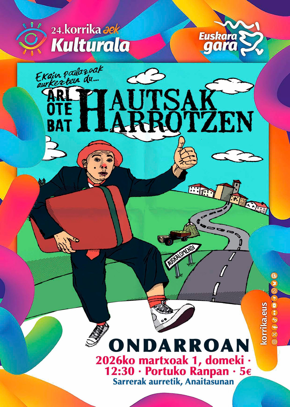 24.KORRIKAn barrun, Martxoak 1in eguerdiko 12:30xetatik aurrea bost euron trukin, EKAIN pallasu eukikou Portuko Ranpan beran lana aurkezten, ARLOTE BAT HAUTSAK HARROTZEN ixenburu darunaz. Sarrerak aurretixaz egongo diz saltzen ANAITASUNA tabernan. Barre algarak etxeko prest?