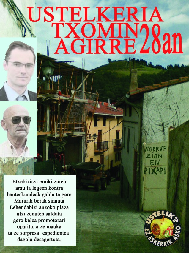 Ezetz euran botere interesan arabera inposatu nahi daben guztiai. Eta beste horretxen beste baiezko dakauz zeoze herritxarra, diferenti, barrixe, ezezagune, sortu nahi daben ahalegin guztintzako. Beti esan dou eta segi engou esaten, gaztik gazela herri honei etorkizun promesa bat landukotzen motor eraldatzaili. Ez ga gexa, ta ez gitxia bez. Eta baakiau horretako kapazak gazela. Horretxeatxik gabiz burrukan eta horretxeatxik segi eingou burrukan eraso guztin gainetik!