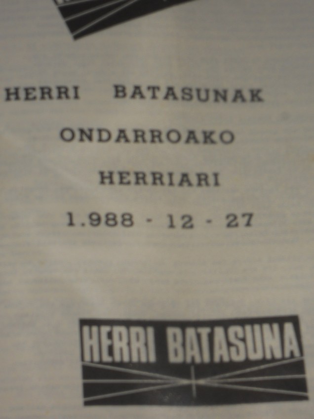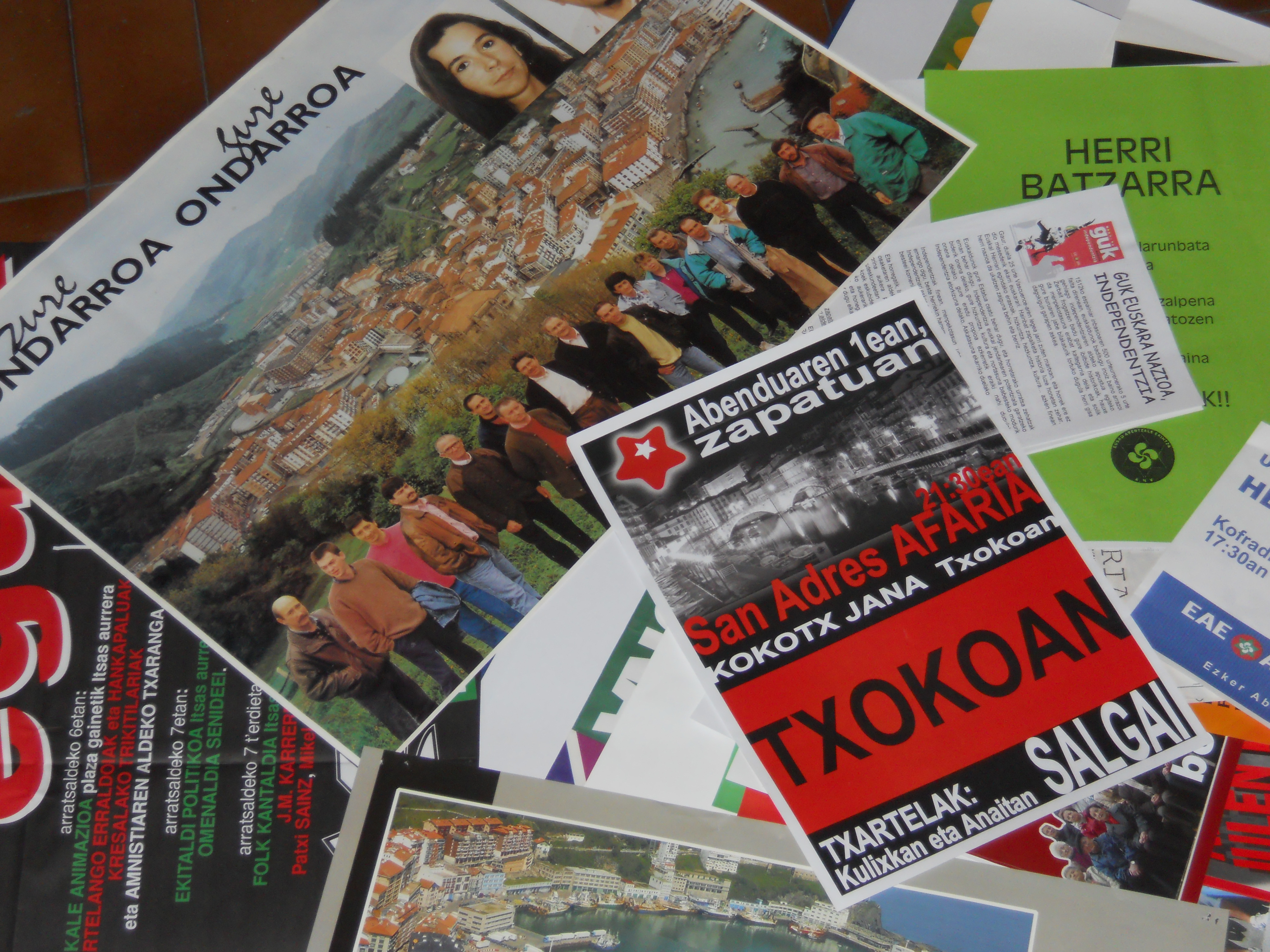ONDARRU beti izan da herri bizixe,eta horren adibide argixe gure kaleetako paretak eta buzoik ixan diz.Hori historixi re.Badaruau denbora bat ,geure herrixan agertu ixan dan hainbat mateixal jasotzen,(kartelak .aldizkarixak,diru libretak.eskutitzak……)eta horrela jasotzen jarraitzeko asmoa daukagu.Hori aurrea eruteko zuen beharra ere badakau eta hori dela ta mezu honen helburu horixe da.Danok gordeten douz ,paper hau edo beste aldizkari edo argazki interesanten bat edo… EZKER ABERTZALI bere osotasunin, AMNISTIXAN MUGIMENDU edo ta Borroka desberdiñakin (langile ,gazte,ekologia…) loturiko mateixala ixango litzateke.Aldez aurretik eskerrak,eta gurekin harremanetan jartzeko TXOKOra edo gure korreo elektronikora bideratu dezakezue.