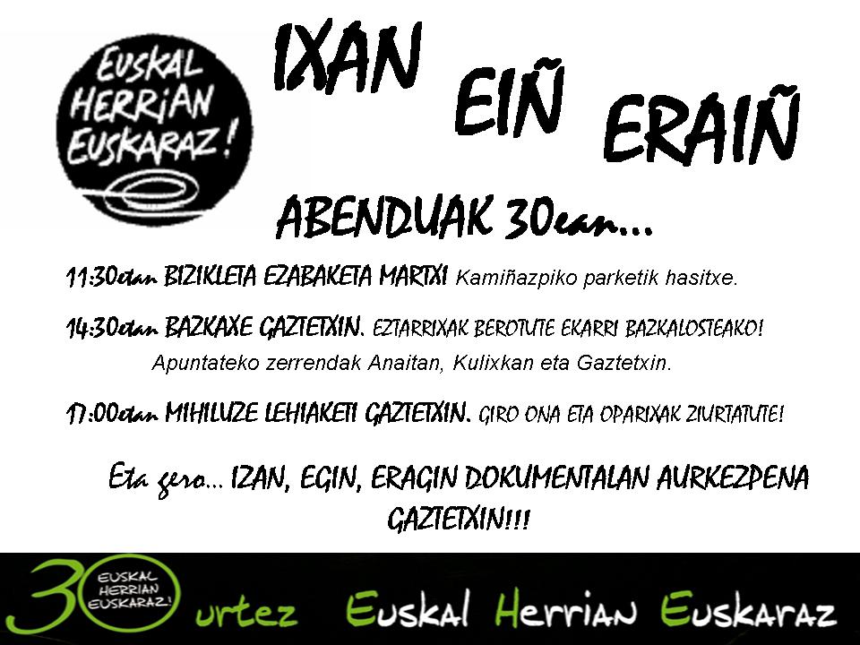 Mehatxu hori ez dugu gutxietsiko, baina errieik ere ez dugu emango. Ez dira errie emateko garaiak. Ez gaitezen erratu; aukeratu dugun bideak antolakuntza eta borroka eskatzen segitzen du, eta bidea eginez joango gara bidean aurrera. Bidea Maltzagakoa da, ez Ondarroakoa, abestu zenuen, Bizkaiko Kultura diputatuaren aurrean. Ez dirudi ikasgairik atera dutenik. Maltzagarainoko bidea egiteko prest direnekin Gernikan baino gehiago, Madrilen Zapatero eta Rubalcabarekin akordio etengabe eta erabatekoan aurkitu dute posizioa.