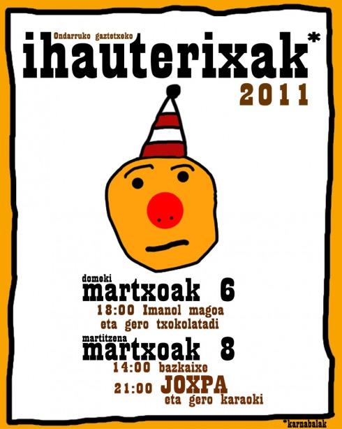 ONDARROAKO GAZTETXEAren 2011ko IHAUTERIETAKO EKITALDIAK 2011/03/01turrune Partekatu hau: Click to share on Facebook (Opens in new window) Facebook Click to share on X (Opens in new window) X Atsegin dut Kargatzen...