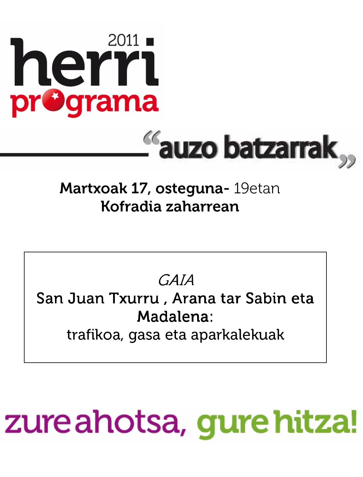 BIHAR 3. AUZO BATZARRA: SAN JUAN TXURRU, MADALENA, ARANA TAR SABIN