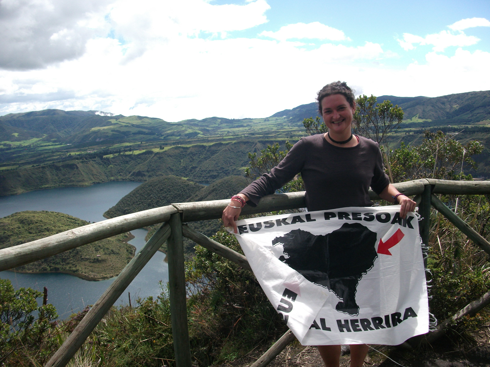 Hasieraku eskasa. Grise, kutsatu, Europako kutriena hamentxe ikusi neban: dana zentro komertzialak, edifizixo alto asko, publizitati, publizitati, publizitati, argixak, bozina hotsa… Arpei serixuk bebai. Ezeukan aurreko lekukin zerikusirik, burun neukan latinoamerika koloretsuaz. Baine era berin, kale saltzailik mile eta Quito inguratzen daben honek Andik be deitxuzten atentzinoi. Hasieratik Pichinchai beatu eta “horra fijo (de ley) altza binala”. Eta on? Ba on jenti eta biximodu ikusten dot gehixa, hirixe baino. Inguruko jentin planak, eoteko eri, bixitxiai aurre etxeku, ondo pasateku… Espontaneitati, esperantzi etorkizunin, planifikazinoi eza, pazientzixi…