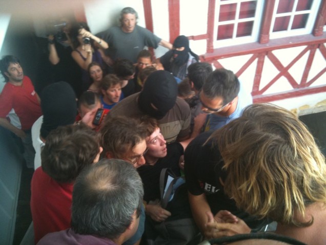 Martinen ahizpak Euskaldunen karrikan duen etxera joan dira poliziak, atxiloketa egiteko asmoz, batzuk burua estalita, beste batzuk kaleko jantzita. Martinek adierazi duenez, beso eta hanketatik eutsita saiatu dira atzematen, baina jendea azaldu da eta hura askatzea lortu dute.