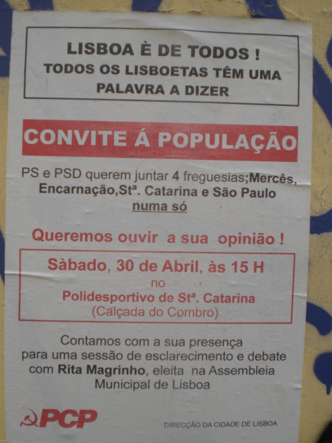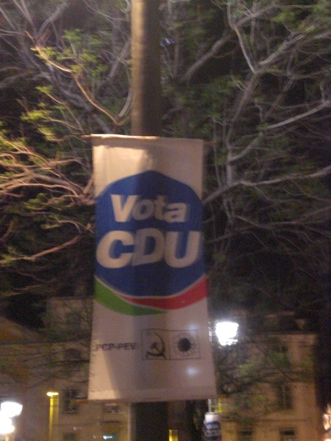 Hauteskunde giru be ezautu dau, eta kalin gexen ikusten zin kartelak ezkerreko kualizinoinak ei zin: CDU eta Bloco de Esquerda.