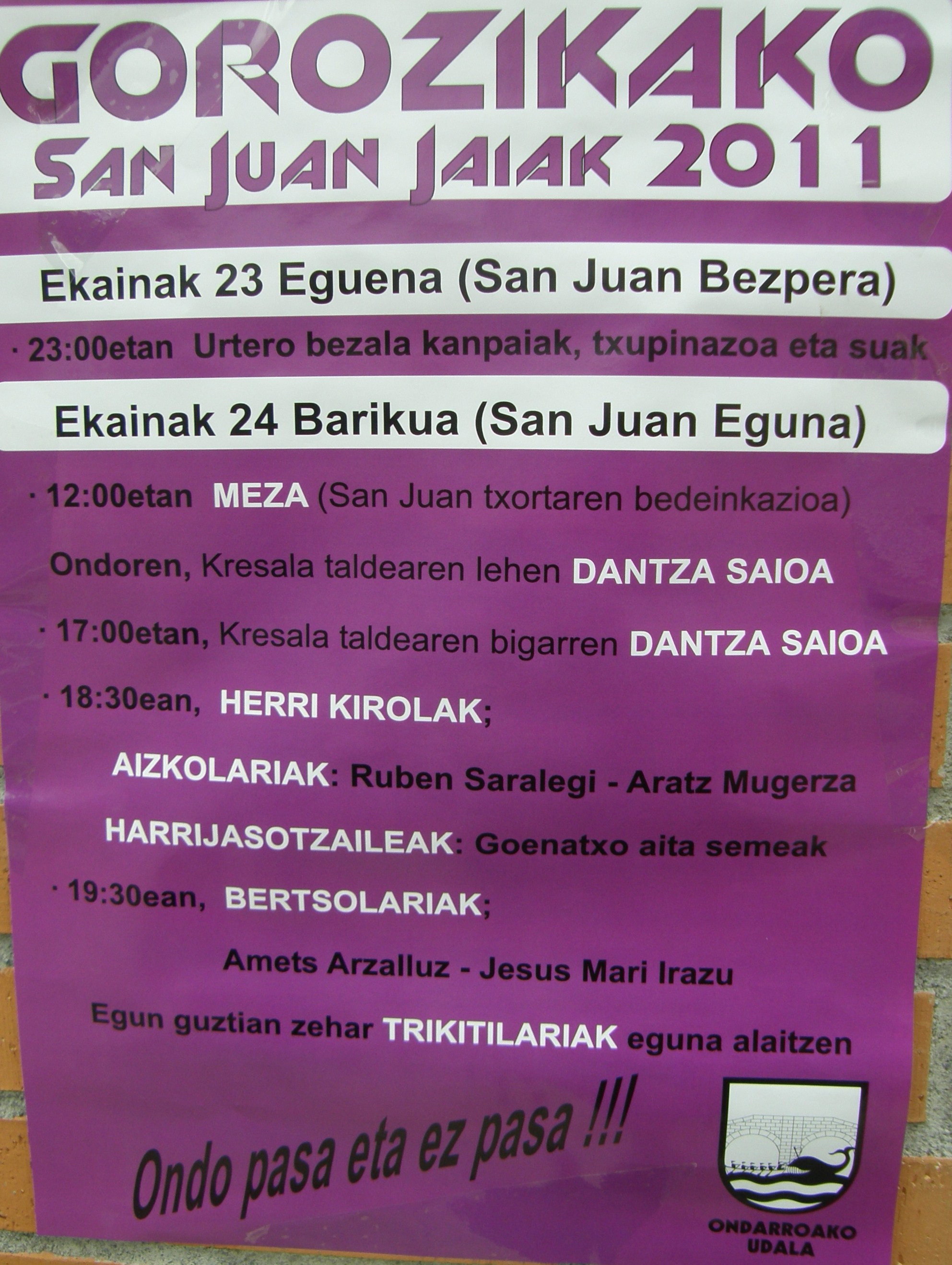 Nahiz eta toki ta motibu aproposa izan, Ondarrutarrak egun horretan ZAPATO AZULE ospatzen dugu eta askok ezin izango dugu bertan egon. Halan da guzti eurekin bat egiten dugu, ia dena ondo ateratzen zaizuen.