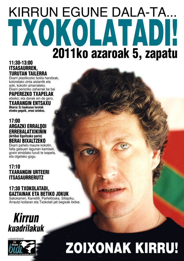 Eta zer esan Txomin Agirre ikastolaz. Hau ere, Zubi Zahar ikastolaren atzetik, sortu zen Ondarroan. Hau ere euskara eta euskal kulturan umeak hezitzeko asmoz. Baina ikastola honengandik ez dezagun itxaron lanik ez egitea honelako “jaietan”. Azken batean, umeak euskalduntzea, bai, baina ez ote da “estar cómodos en España” baita Ikastola horren arduradunen helburua ere? Zergatik ote gurasoek iritzi ezberdinak izan ditzaketen gaietan -aipatzen ari garan jaiaren kasuan bezala- beti agintean dauden lege eta arauetara makurtzen direla Txomin Agirre ikastolako arduradunak?