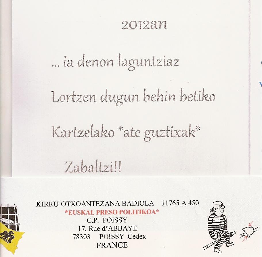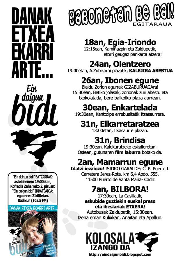 Animaten gazen guztiok abendun 22 eta 23an batuko ga entsaixuk eitteko, Kofradi zaharrin, arratsaldeko 6 t’erdixetan. Eta Gabon egunin kalea urtengorou abestea.