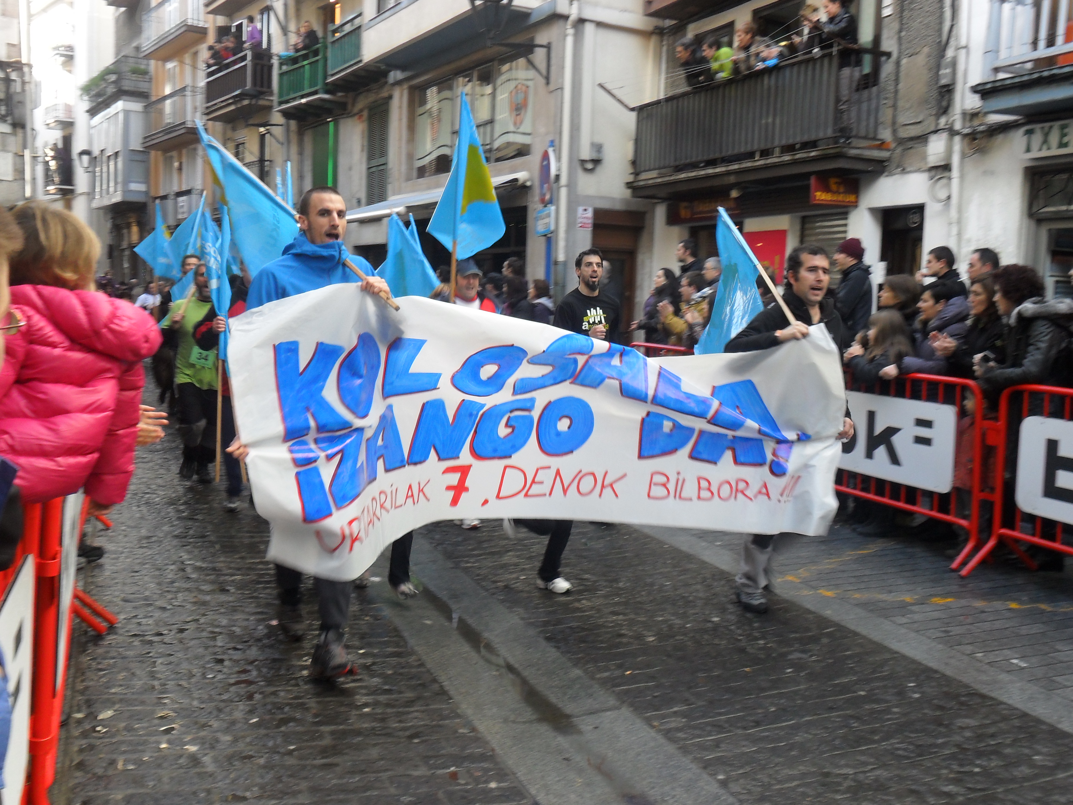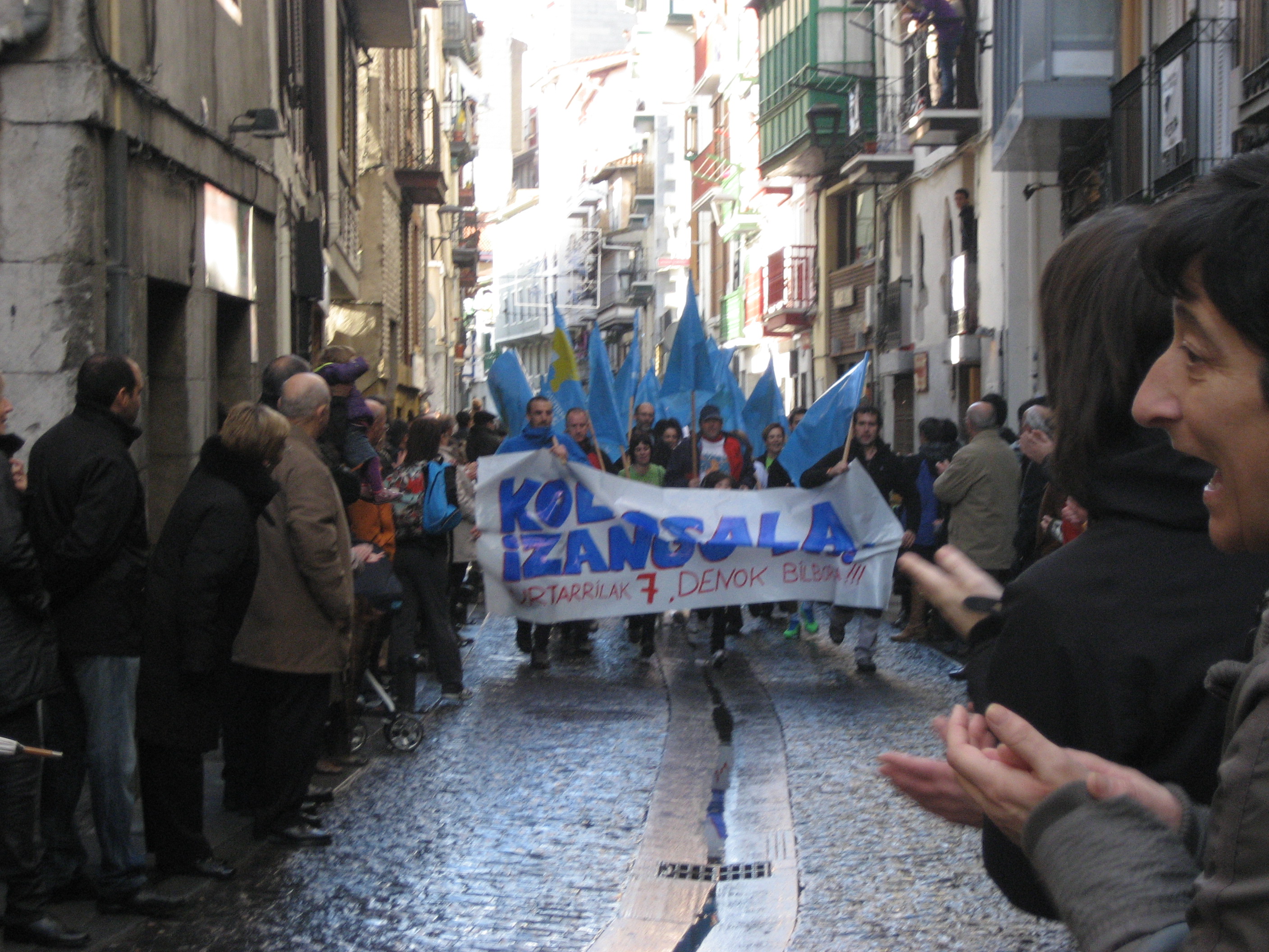 1985ku re goixan agertzen dan argazkixe. Ordun eta gaur motibuk hor jarraitzen dabe eta, aspaldiko lez, aurten be kalea urtengo rou, falta dizenak gogoratzen. Eta gure ikazkiñai eskakizun berberak egingotzauz: ETXIN NAHI DOUZ.