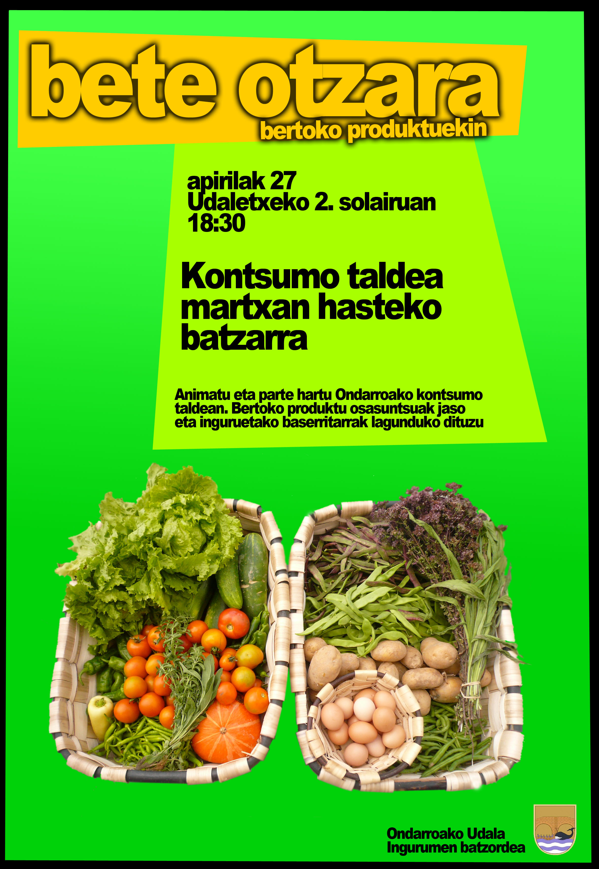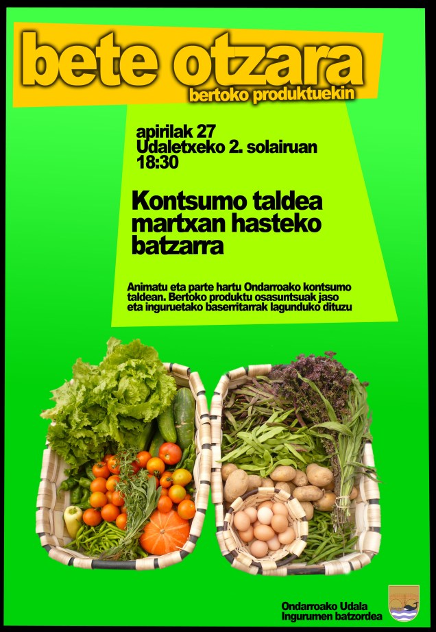 Ingurumen batzordi, ostea, Kontsumo taldi martxan ipintxea du. Eskualdeko baserritxar bat eta herriko 10 familixa bertoko baserriko produktuk trukatzen hasiko diz egun batzuk barru. Jente gexauak kontsumo taldin apunta nahi badau, baixakun dauke aukeri, udaletxea urreatute.