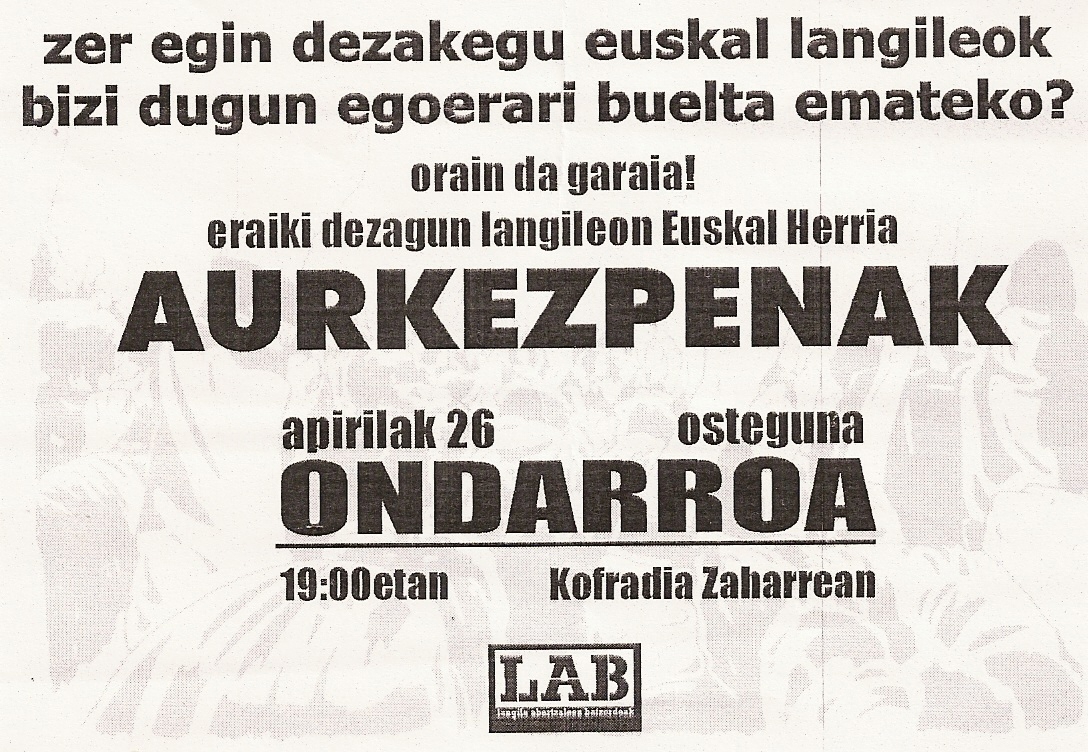 Egun bat baino gexa da, ta hona ailateko pilo bat borroka egon diz. Hamen azpixan agertzen dizen pegatak horren adibide bat baino ez diz. 1977xan ONDARROAKO ARRANTZALIK borroka gogor bat aurrea erun ben euran eskubidin alde, ta gutzako egun horrek gogorazi beharrekuk irizten gazkuz. Batzukatxik ez balitxake ondiokan prehistoixan bixiko ginake ta. Gure omenaldixe borrokalari haiei.