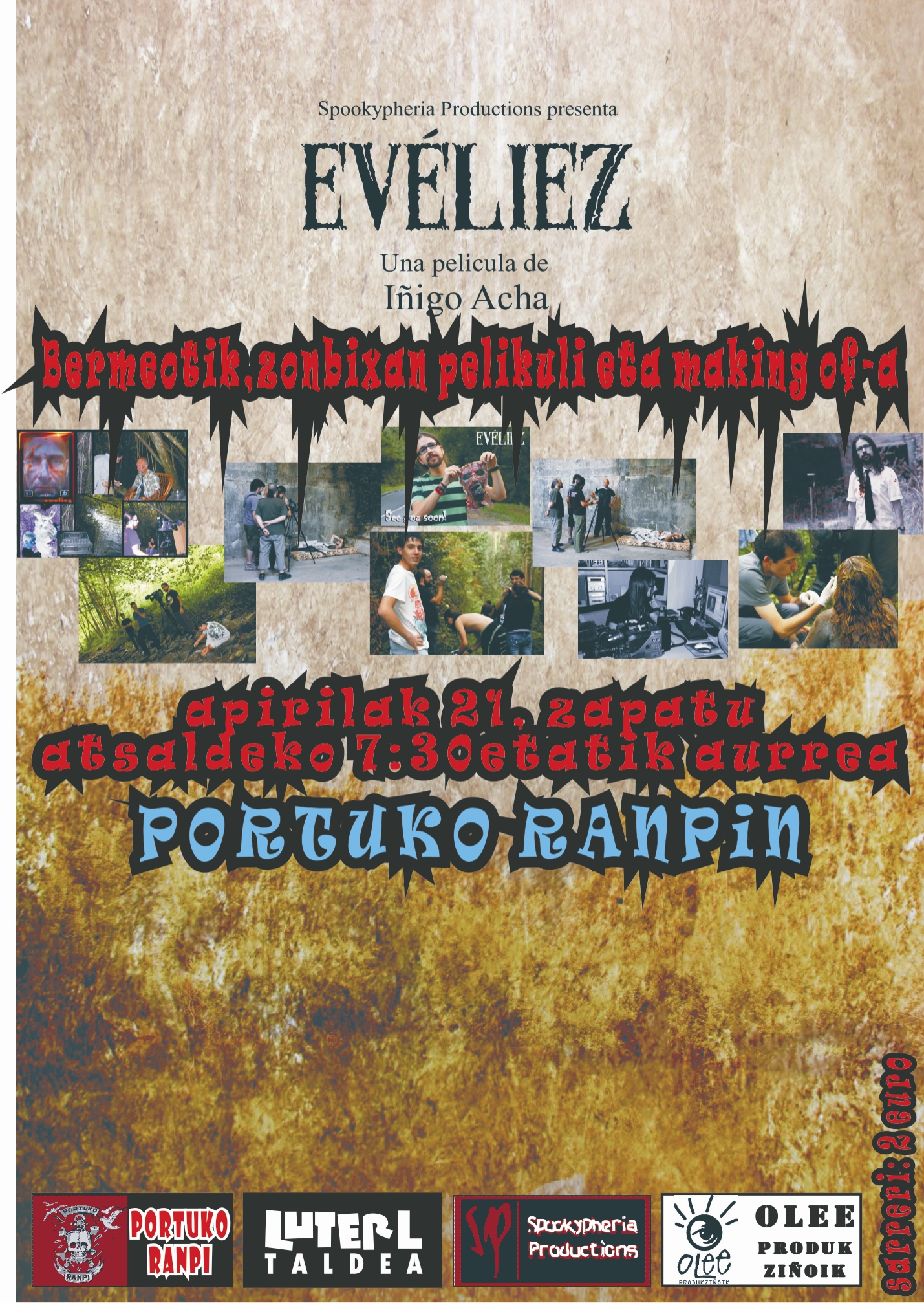 “EVELIEZ” filmea 58 minutuko erdimetraia da. Errodaia eta muntaketa lanetan 5 urte eman dute. 2011eko azaroan estreinatu zen egilearen sorterrian. Besteak beste, Roberto Garay komikilariak parte hartzen du aktore legez. ZONBIEN ISTORIOA DA, beldurrezko filmeetan azaltzen diren osagai guztiekin. Bermeoko SPOOKYPHERIA PRODUCTIONS kultur taldearen ekoizpena da.