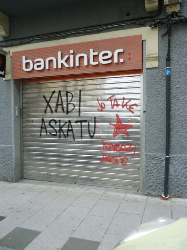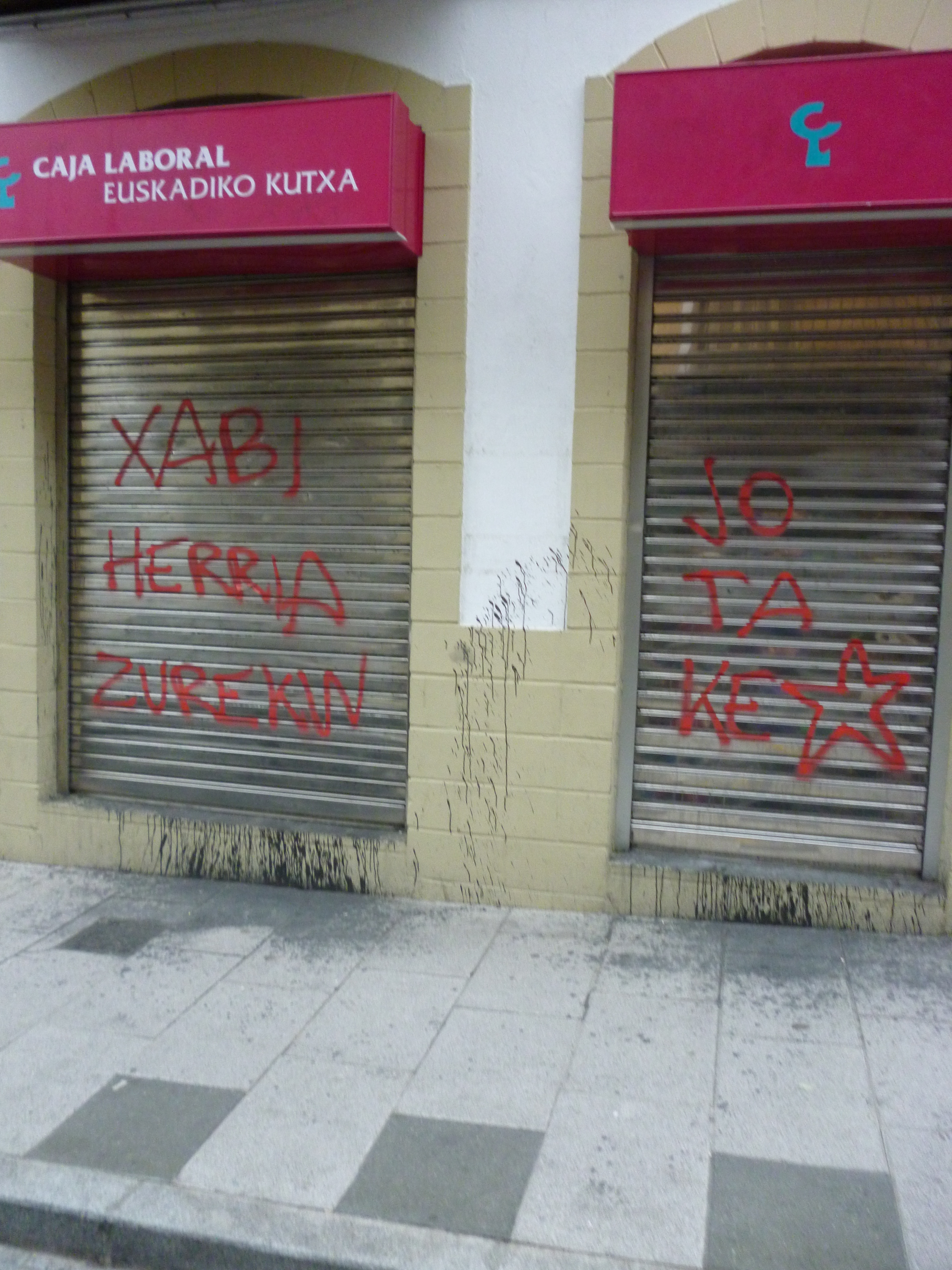 Gaur esan birde, herriko banketxin hormak XABIn askatasune eskatzeko aldarrikapenez jositxe agertu dizela