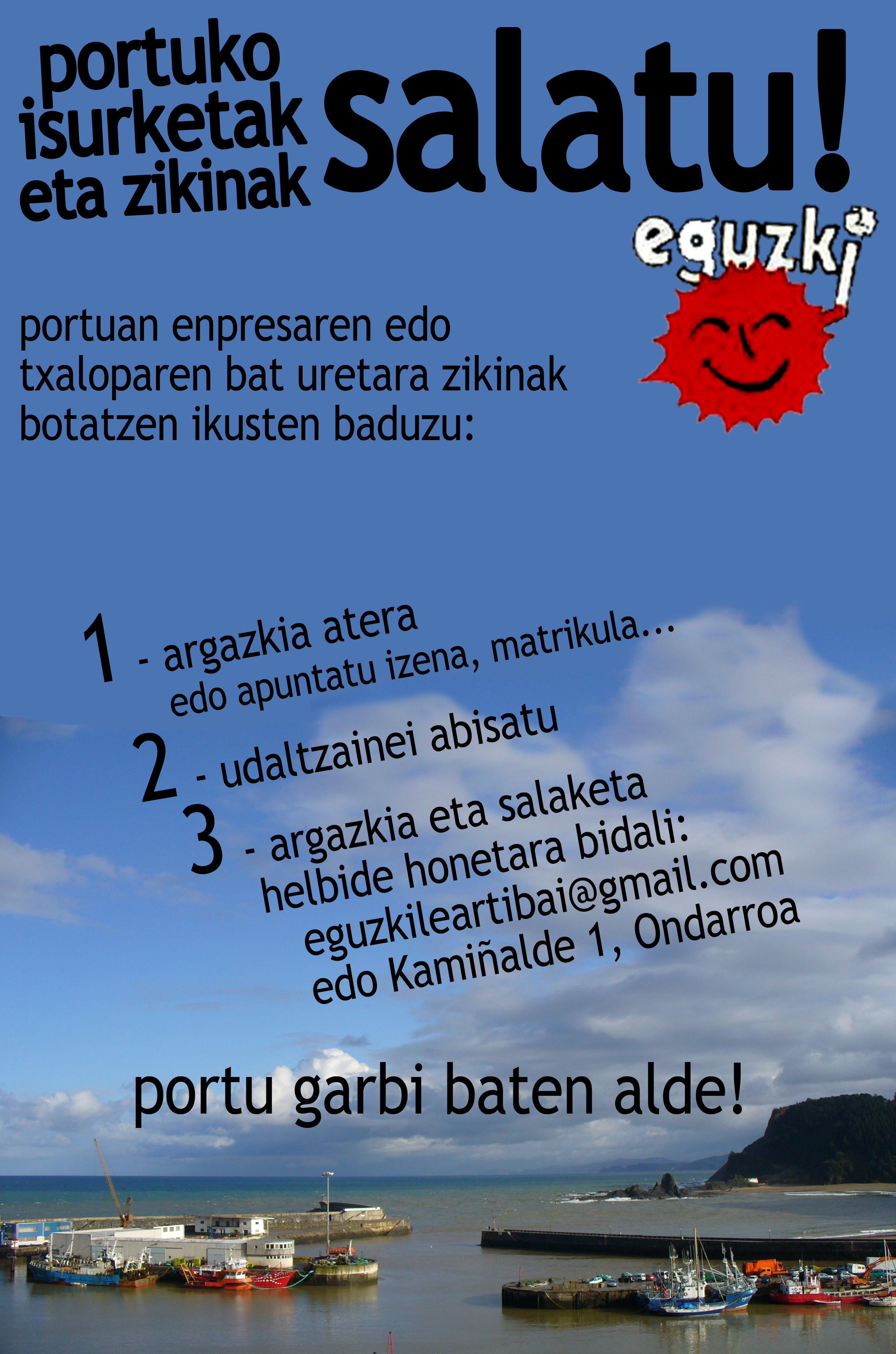 Eguzkik portu garbi baten aldeko kanpaina bat ipini dau martxan, informazinoi gexa hamentxe ahal dozue topa: