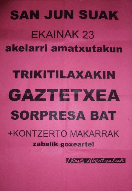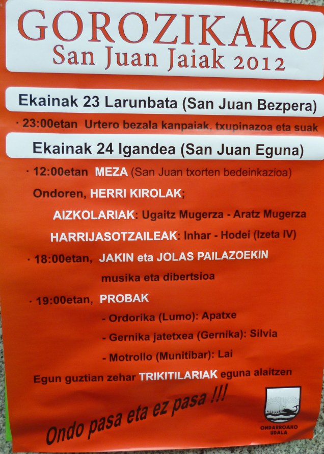 Dantzak amatxu, pare bat trago hartu, afaldu ta auzotako suak ikustea. Gero dantzak ta ARTELANgo sorgiñakin PLAZA MUSIKA