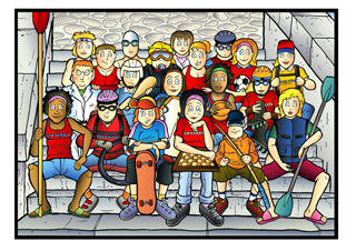 Jolasak, eskalada, saskibaloia, futbola, patinak, voley, hockey, eskupilota, igeriketa,gimanastika, aerobik-txiki, kids pilates,…