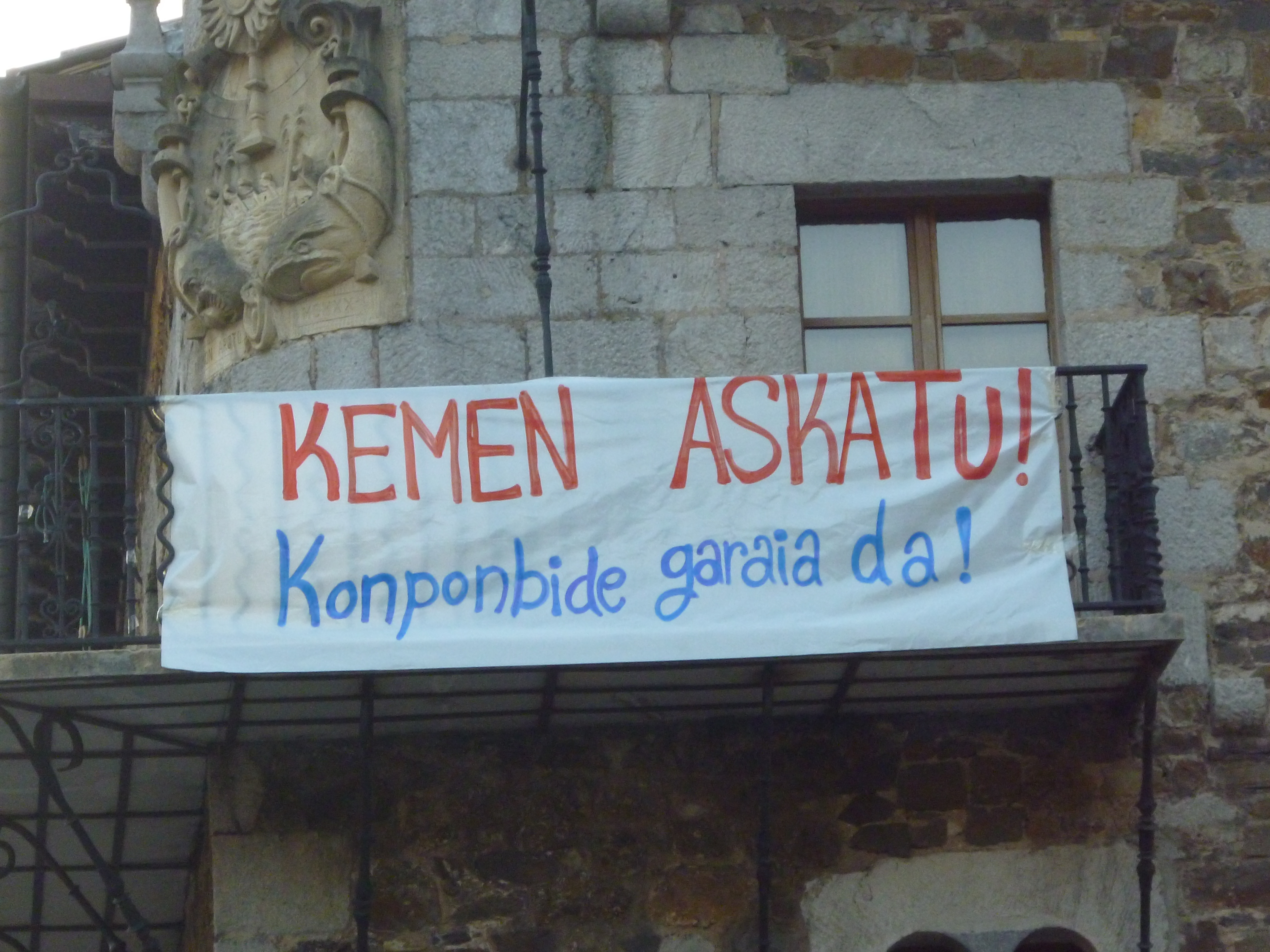KONPONBIDE GARAIA DA pankartin atzetik urten dau manifik herrittik zir.