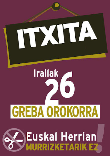 Gaur,irailak 26, Turrunak be greba orokorraz bat etxen dau. Eskainiko douen informazinoi bakarra grebiaz lotutaku ixango da. Eguerdixan eta iluntzin greba egunan inguruko barrixak argitaratuko douz. Ostontzin, kalin egongo gaz, mobilizazinoitxan parte hartzen.