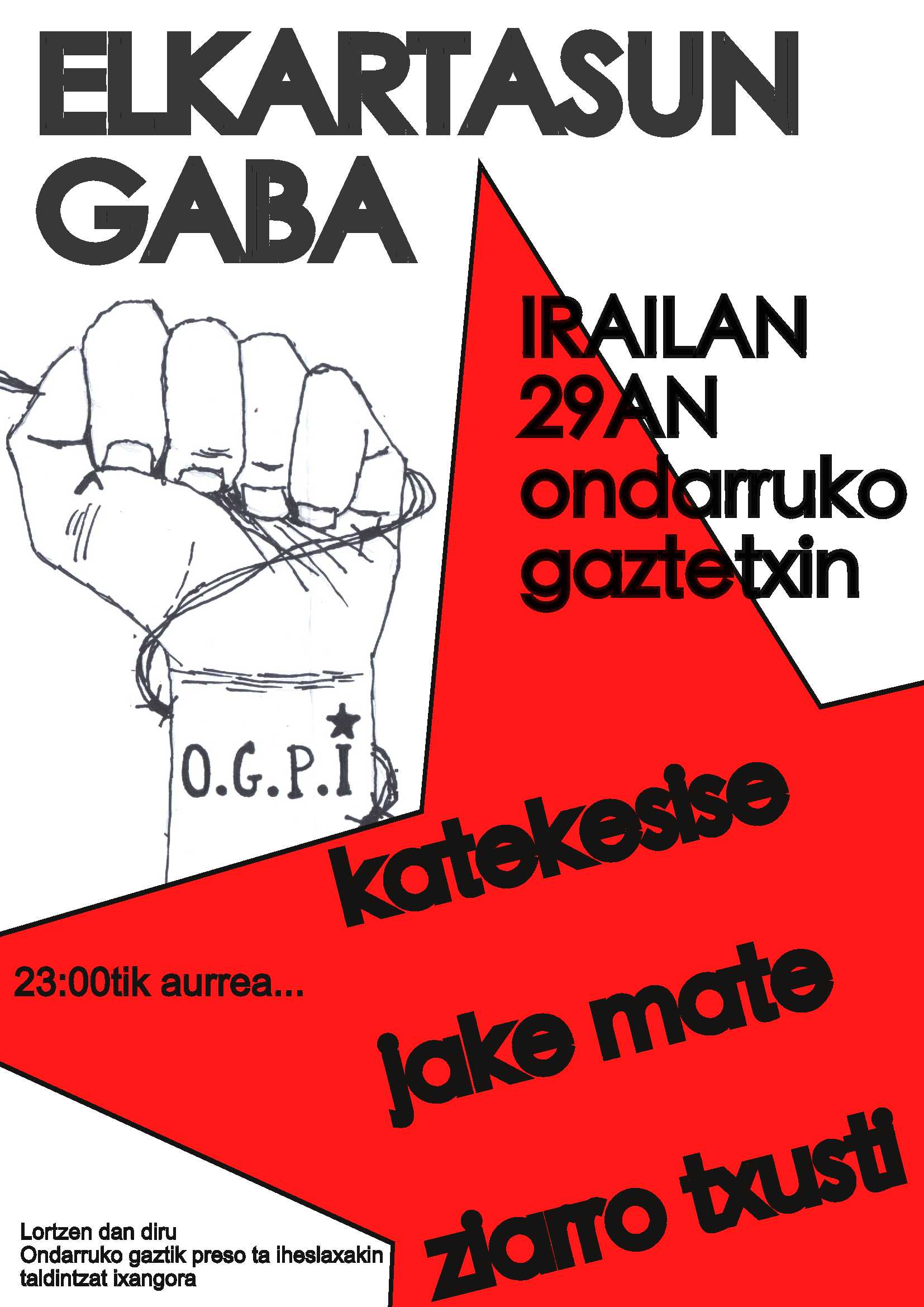 Irailak 29 (zapatu): ELKARTASUN GABA, Ondarroako Gaztetxin