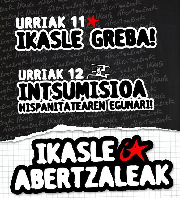 IKASLIK diñue gaur borrokatu bir dabela, bixar etorkizune nahi dabelako euki. Kritikaten dabe, ikastetxe batzun zuzendaritzak oztopuk jartzen dotzelako mobilizaziñoik aurrea eruteko, beti be ikastetxin araudixetan oñarritxute. HIPOKRESIARI STOP, diño kanta batek. Azkanin esan arratsaldeko 7etan MARKINAKO zelaitxik hasiko dala eskualdeko manifi ,EUSKAL HEZKUNTZA SISTEMA DUIN BATEN ALDEko lelopin.