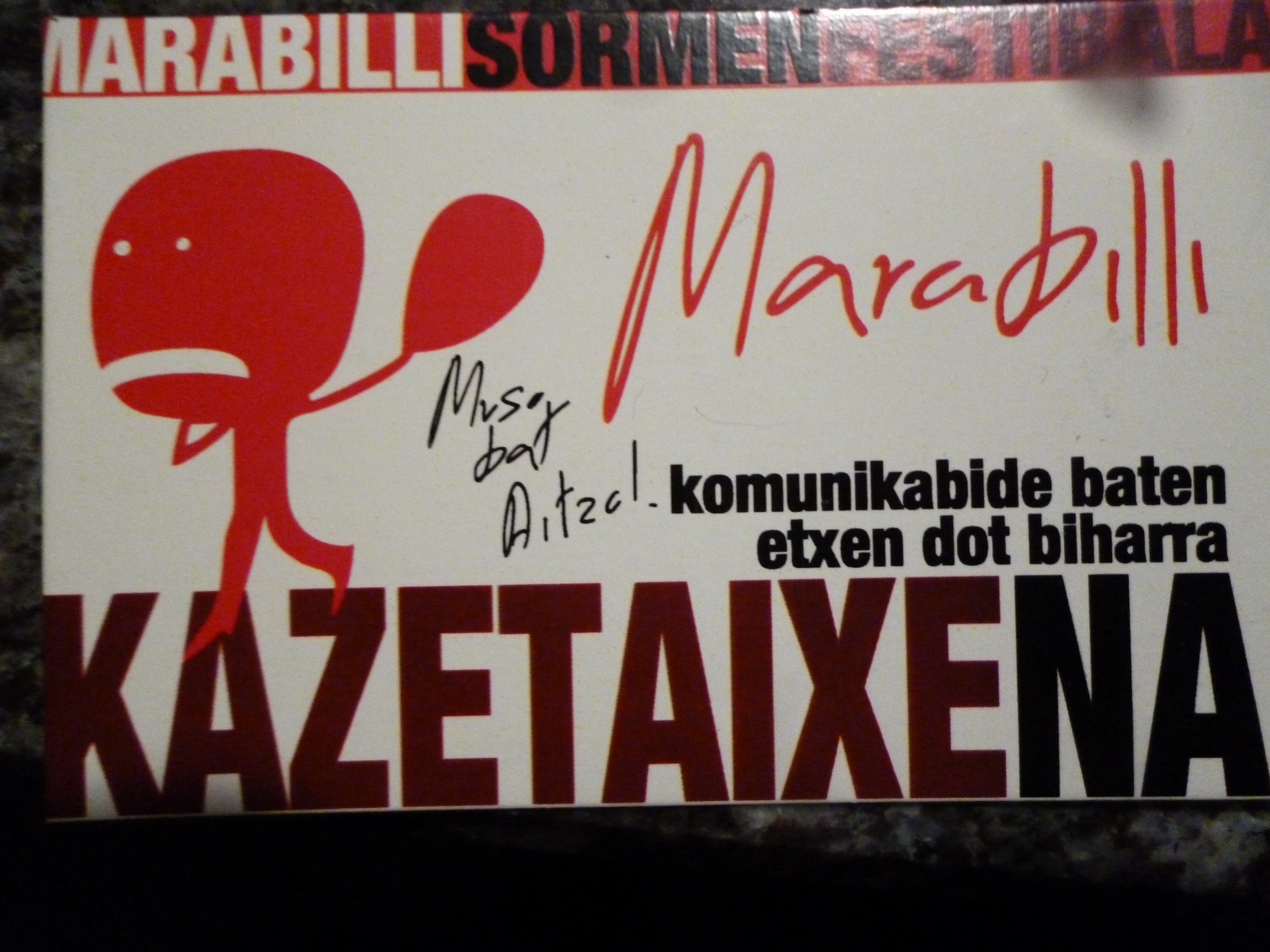 Atzo hasi zalakun, eta Marabilli festibala amaitzen dakau. Aurreatu geinke balorazioi zein ixango dan: festibala marabillosu ixan da! Ekitaldi guztik ixan diz ederrak, eta jentin erantzune be ikusgarrixe. Zoixonak antolatzen ibili zazen guztioi, eta eskerrik asko! Datorren urtekun zain geatzen gaz!