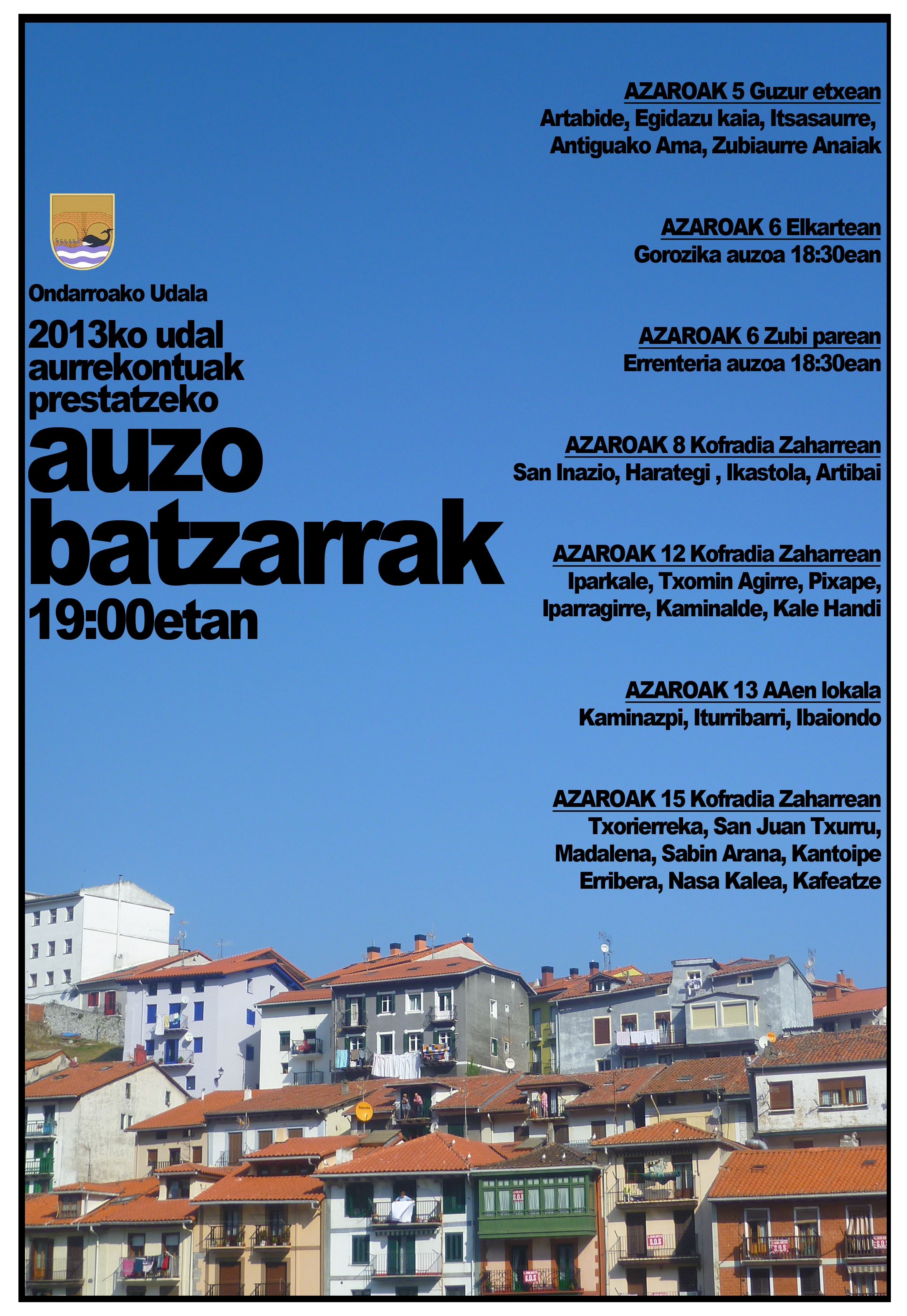 Hasi diz 2013rako auzo batzarrak 2012/11/06turrune Udalak ipinitxuz martxan 2013koaurrekontuk preparateko auzo batzarrak. Ixez einddako proposamenak aztertu, zer ein dan eta zer ez ikusi, eta datorren urteko prioridadik markako diz auzoz auzo. Partekatu hau: Click to share on Facebook (Opens in new window) Facebook Click to share on X (Opens in new window) X Atsegin dut Kargatzen...
