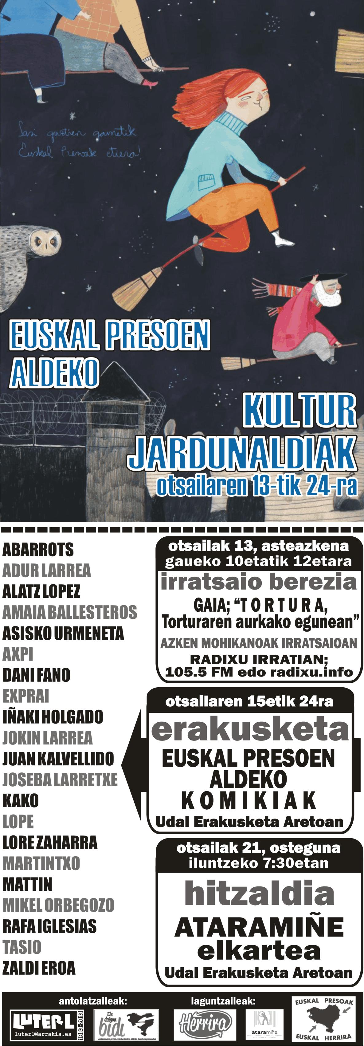 Urtarrilaren 12ko manifestaziñoin ingurun ekimen ugari sortu zin Euskal Herrixan. Ekimen hoietako bat 21 euskal komikilarixek eindako lanak ixan zin: Erakusketi jarritxe egon zan Iruñean gabon bueltan, eta urtarrilaren 12xan bertan Bilboko Arenalin. On, erakusketi Ondarrun da: Otsailaren 15in zabalduko da Udal Erakusketa Aretun (Alameda aurrin) hilaren 24ra arte. Hilan 21in, hitzaldi bat be ixango da Ateramiñekukin erakusketa areto bertan.