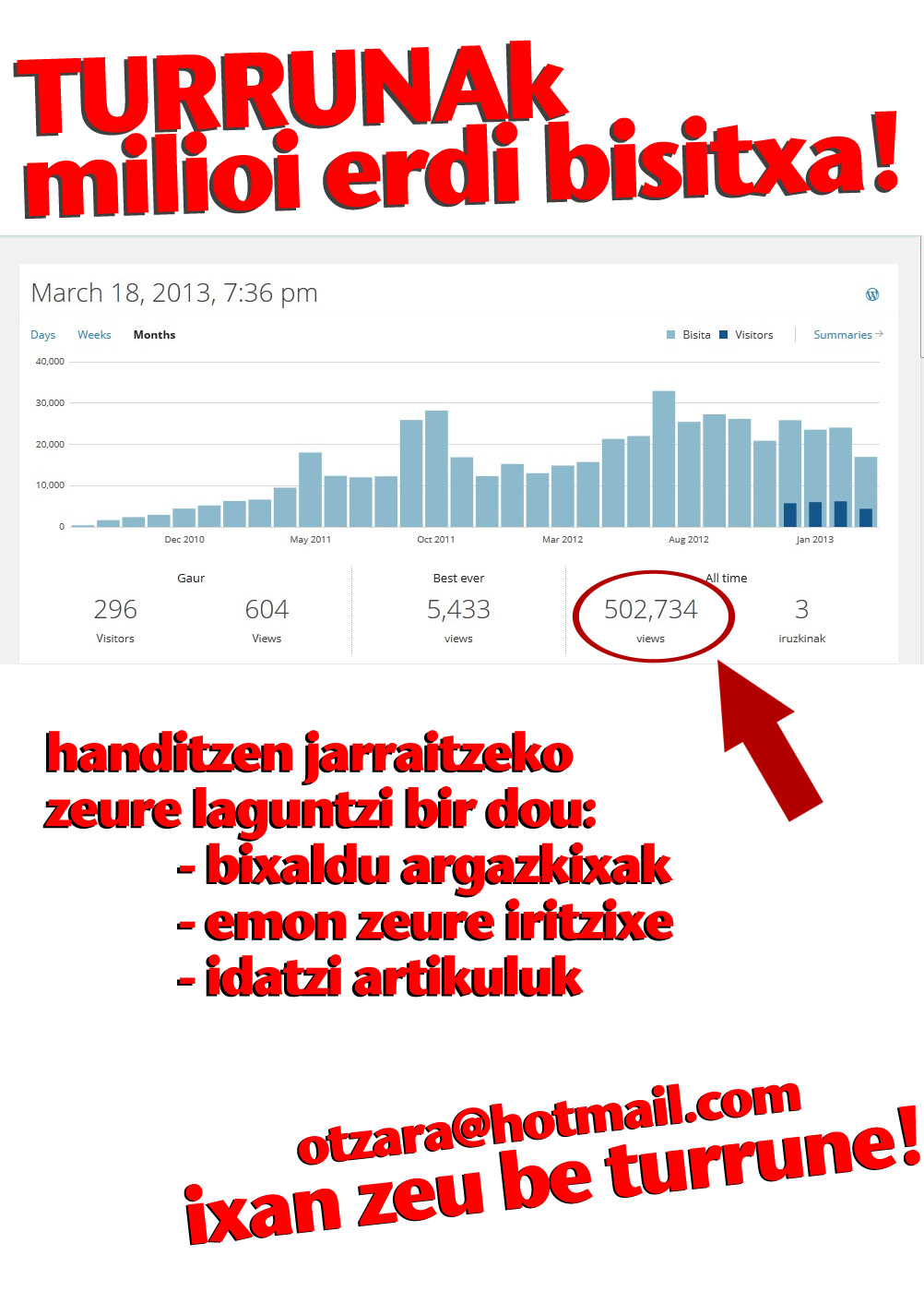 Gaur goxin 7:30ak aldin sartu de ONDARRUKO lurretan, da jendik betiko lez erantzun dau, gainezka egon diz kilometro guztik. Jentik argazkixak bixaldu ahala sartzen jungo ga. Hamen gazte mugimenduk erun dabenak (hartu douzen lelengokuk)