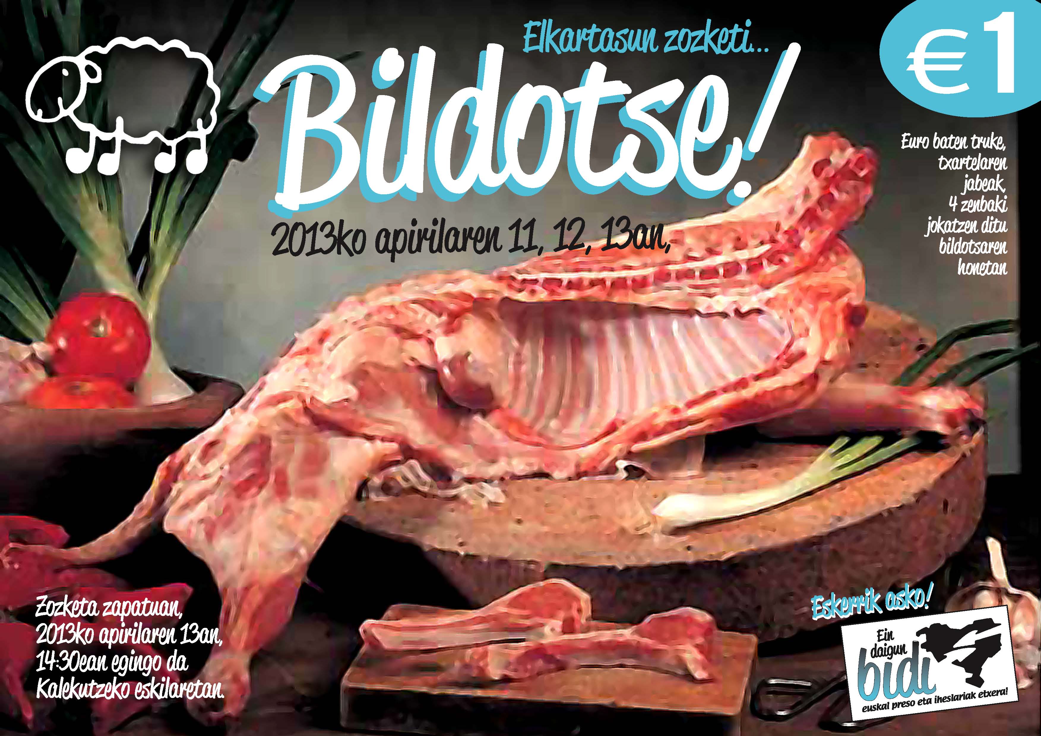 Ein Daigun Bidiko Sostengu taldik aprillin be BILBOTSE zozketatuko dau. Bai, beste bat! Lehengu entrega gendun, e? (zeuek pentsa baik) Ba hasi eguenin pintxopotin eta zapaturarte eongo gaz tikik saltzen (aprilan 11tik 13re). Zozketi, zapatun ixango da, ordu 2 txerdixak aldea.
