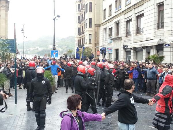 Gaur azkanin be erun eitxue Donostiko gazte auziperatuk. Bañe eurak esan ben morun eztotxue erun alperrik. Bulebarreko Aske Guni erreferentzixa bihurtu de gaztiontzako, bertan egunetan zir batu ga milaka ta milaka gazte. Sententzixik urten banetik zutabik antolatu zin, gazte talde handixak gazte auzipetuai goxin etxetik urten eta aske gunea juten laguntzeko eta gero etxea buelta etxeko bebai. Atxilotze arriskun euazela jakin arazitzenin 24 ordu Aske Gunin pasati erabaki zan. Milaka lagun mobiliza ga auzipetun alde; Segikuk ixateatxik, antolatzeatxik, euran idea politikukatxik kartzelaratzeko arriskun euazen gaztik babesteko herri harresixe sortuz. Nahiku dela esaten. Eguaztenin PNVei be luzatu gakon esku Aske Gunetik, herri harresixan parte hartzeko gonbiti etxen eta esaten mesedez ez bixaltzeko ertzainak Madrideko tribunal inkisidorin agindduk betetea. Bañe keba, betiko txakurrak betiko txakurrak ixaten jarraitzen dabe. Dana dala, 40 furgona euazen gaur Donostin, ehundaka z…..k, 8 gazte atxilotzea… dana oso proportzionau. Hori bai, 1000 gaztek osatutako herri harresixaz topa di, eta eztabe erreza euki.