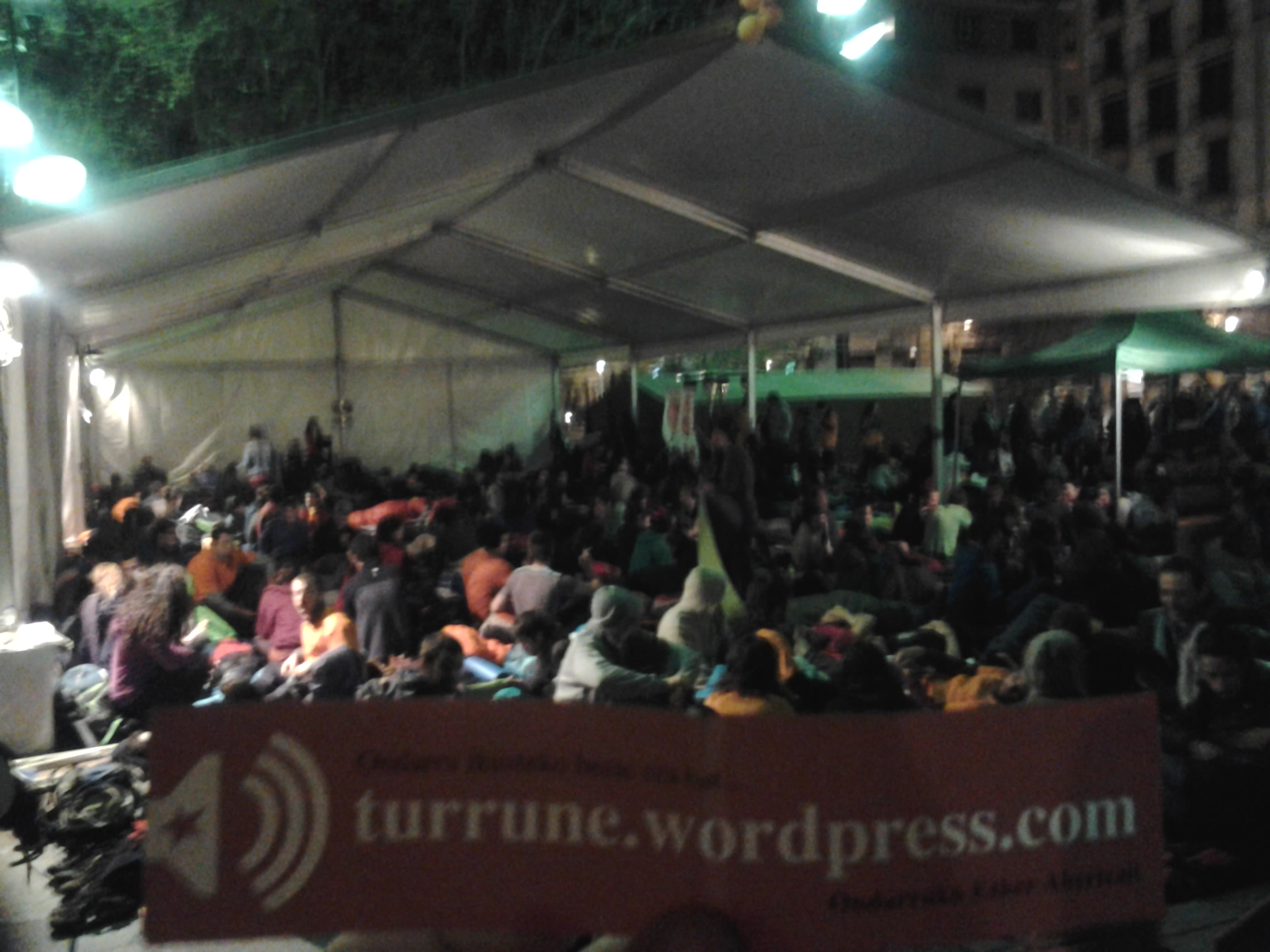Gaur azkanin be erun eitxue Donostiko gazte auziperatuk. Bañe eurak esan ben morun eztotxue erun alperrik. Bulebarreko Aske Guni erreferentzixa bihurtu de gaztiontzako, bertan egunetan zir batu ga milaka ta milaka gazte. Sententzixik urten banetik zutabik antolatu zin, gazte talde handixak gazte auzipetuai goxin etxetik urten eta aske gunea juten laguntzeko eta gero etxea buelta etxeko bebai. Atxilotze arriskun euazela jakin arazitzenin 24 ordu Aske Gunin pasati erabaki zan. Milaka lagun mobiliza ga auzipetun alde; Segikuk ixateatxik, antolatzeatxik, euran idea politikukatxik kartzelaratzeko arriskun euazen gaztik babesteko herri harresixe sortuz. Nahiku dela esaten. Eguaztenin PNVei be luzatu gakon esku Aske Gunetik, herri harresixan parte hartzeko gonbiti etxen eta esaten mesedez ez bixaltzeko ertzainak Madrideko tribunal inkisidorin agindduk betetea. Bañe keba, betiko txakurrak betiko txakurrak ixaten jarraitzen dabe. Dana dala, 40 furgona euazen gaur Donostin, ehundaka z…..k, 8 gazte atxilotzea… dana oso proportzionau. Hori bai, 1000 gaztek osatutako herri harresixaz topa di, eta eztabe erreza euki.