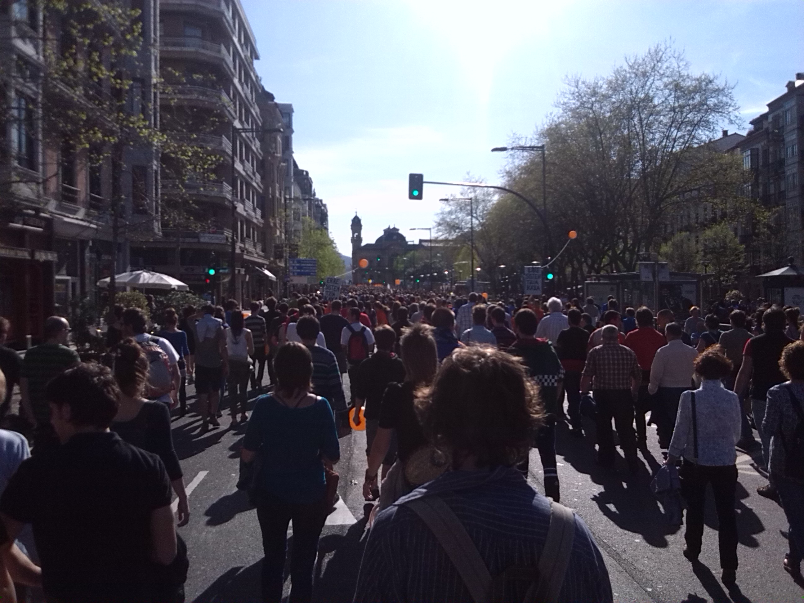 Asko ixan ga bertaratu gazen ondarrutarrak, arratsaldeko 5ak eta laurdenetan Boulebarretik hasi eta ordu bete ingurun ibili ga Donostiko kalitan tzir leko bardinin amaitzeko ibilbidi. Aurretik txapelgorrixak bidi zabaltzen jun diz, ta gu bittartin” PNV lotu zure txakurrak” oihukatzen. Esker txarrekuk ez baga geu!