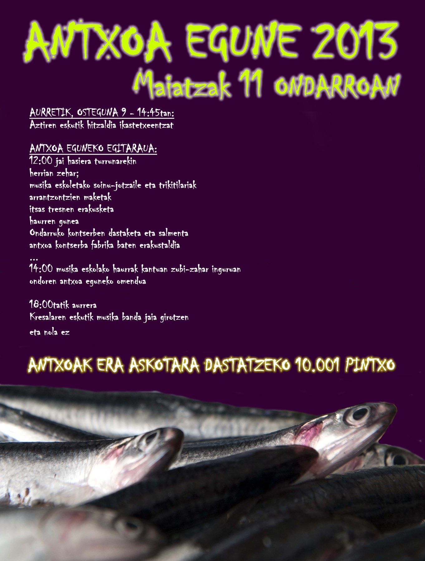 Maiatzak 11 (zapatu), Antxoa Egune Ondarrun Irudia 2013/05/06turrune Partekatu hau: Click to share on Facebook (Opens in new window) Facebook Click to share on X (Opens in new window) X Atsegin dut Kargatzen...