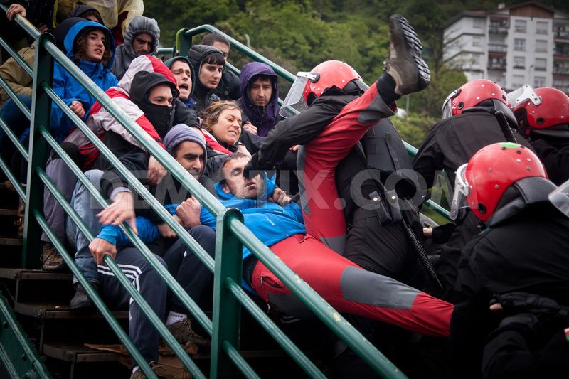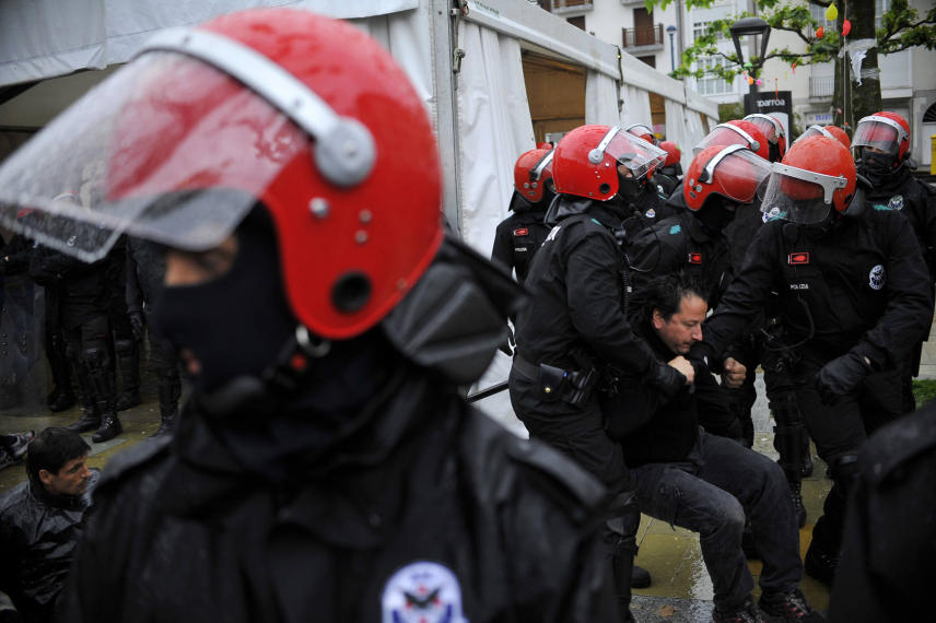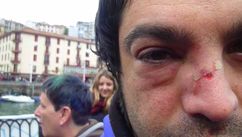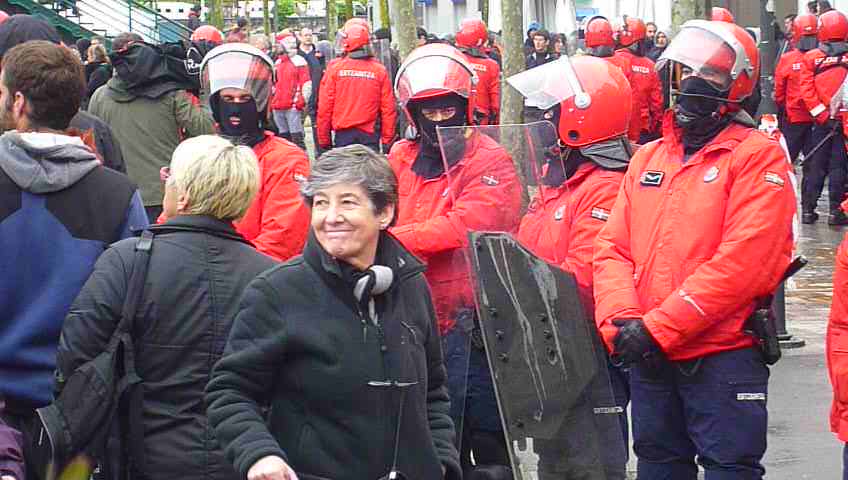 Hamen pare bat argazki, ertzainan metodo pazifikuk zeintzuk dizen ikusteko: surretin ten etxi, beixetan atzamarrak sartzi, jentiai apuntati…