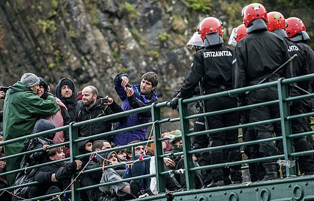 Bi bideo argigarri: bata, ertzainak herritxarrak apuntaten; besti, ertzainak Maribi Ugarteburu mehatxatzen. Guri, harrotasune; eurana, harrokeixi!