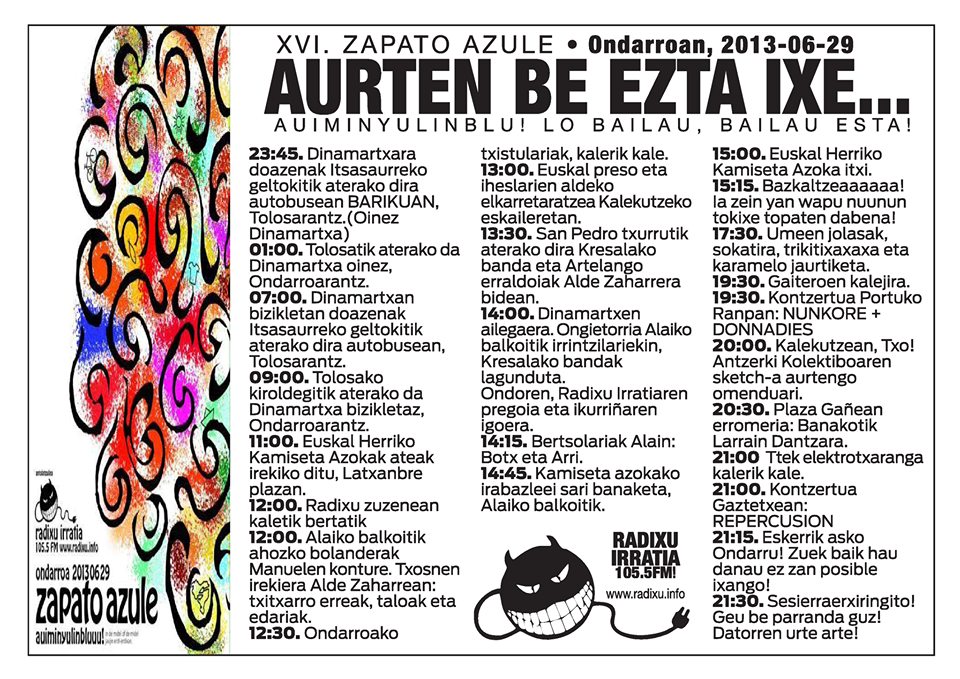 Eskerrik asko gaur biharrin eon zazen herritxarroi. Batez be Radixukuai! Zuek baik, ezta Zapato Azulik!