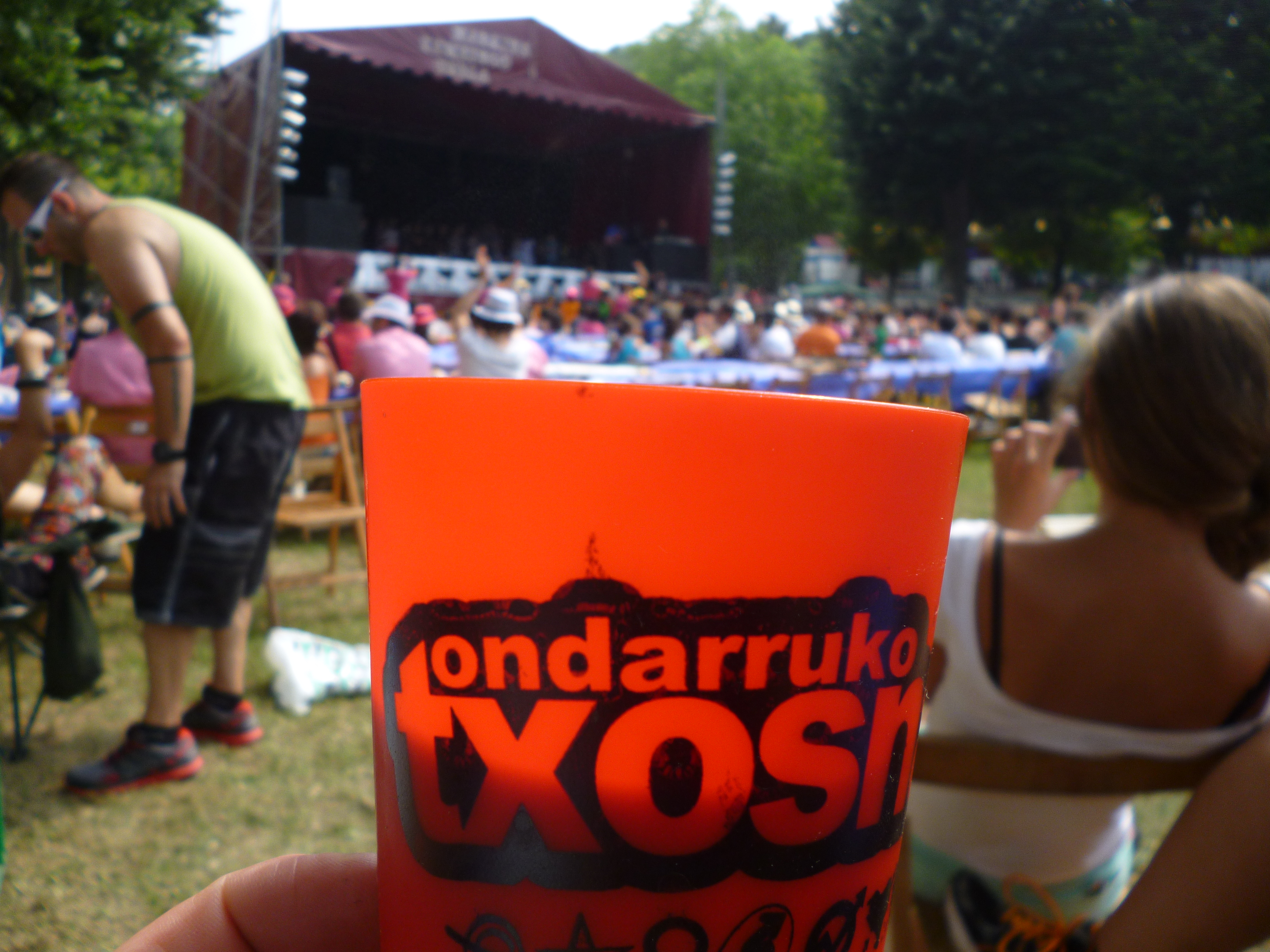 Halan da be taberna eta herritxar askok erabili eta botateko plastikozko basuk erabili dotxuez, eta kristalak. Eta horren ondorixuk kalitan igarri douz: zamarrez beteta amatxu dau herrixak. Ondarruko eta Euskal Herriko jai guztixetan errepikatzen dan arazu de.