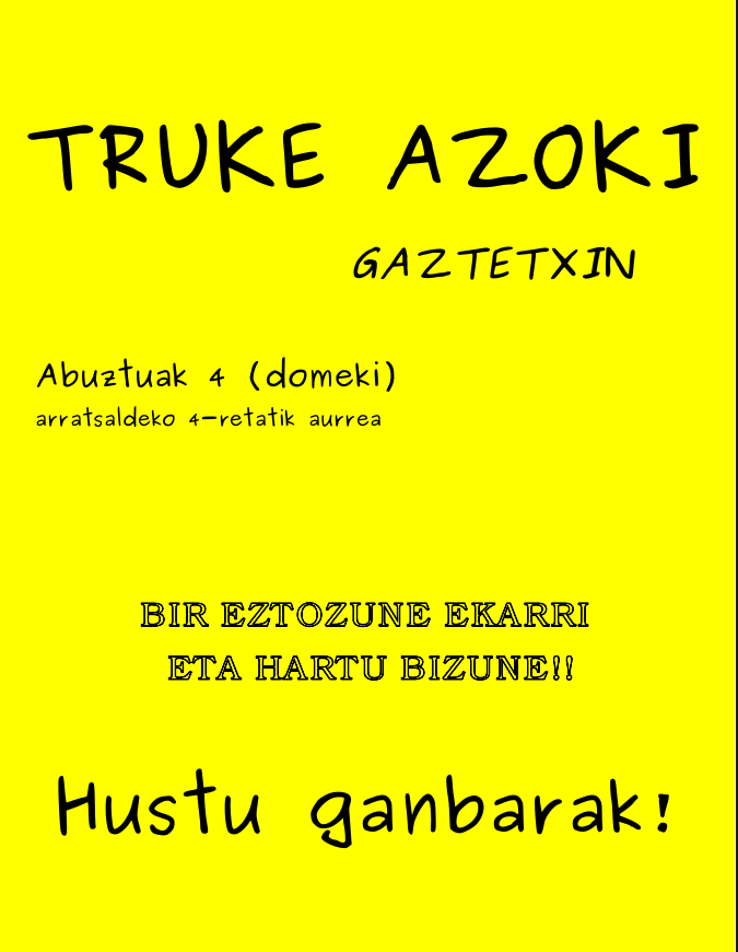 Abuztuak 4 (domeki) truke azoki gaztetxin Irudia 2013/08/02turrune Partekatu hau: Click to share on Facebook (Opens in new window) Facebook Click to share on X (Opens in new window) X Atsegin dut Kargatzen...