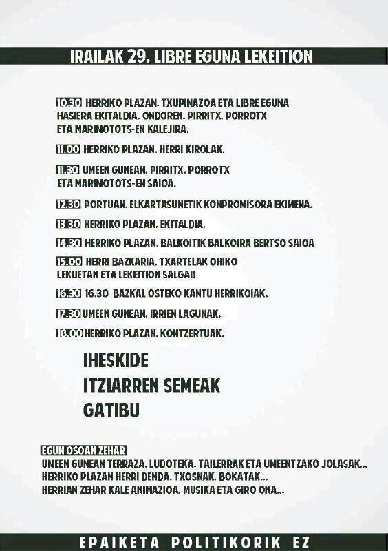 Irailak 29 (domeki) LIBRE egune LEKEITIOn