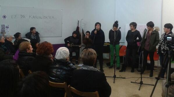 Etxin epeletan egoteko egueldixe egon arren ezin gendun galdu gaur arratsaldin lau emakume bertsolaik eskeini daben bertso saio musikatu. Jendez beteta egon da aretu, kalefaziñon faltan giru ederto berotu dabe eurak, Miren Amurizak, Alaia Martinek, Uxue Alberdik eta Onintza Enbeitak. Gai jartzalle Amaia Agirre ixan da eta Ixaak eta Mantxik musikatu dabe ordu ta erdi iraun daben ekitaldixe.