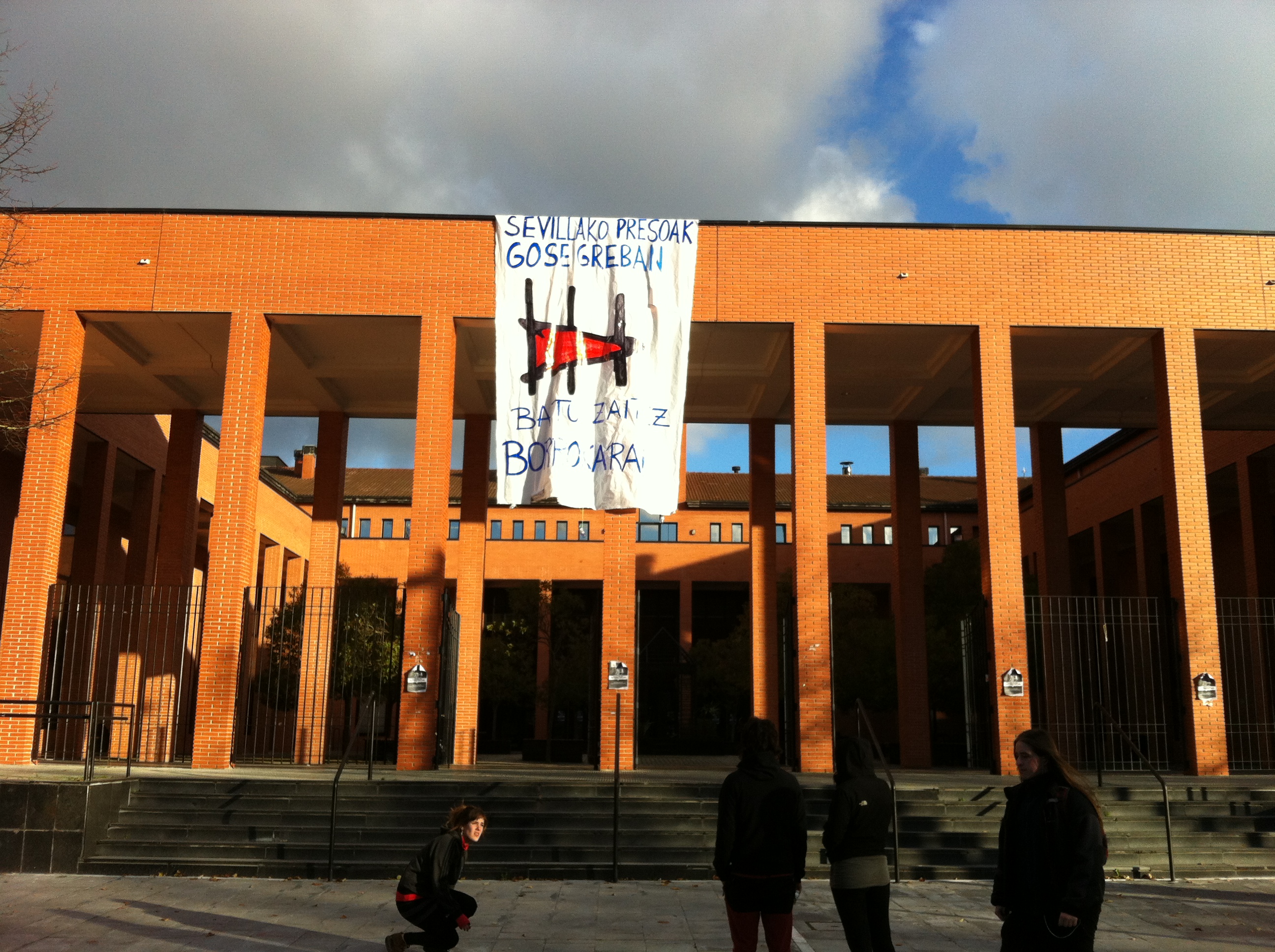 Sevilla II kartzelan GOSE GREBI BERTAN BEHERA lagati erabaki dabe OSASUN ARAZUK dizela-ta. Baraualdixe laga enbir ixan dabe bañe egoera bardiñin jarraitzen dabe. Euren burruki ezta amatxu eta horrei jarraipena emoteko, GAUR (azaroak29 baixaku) goxeko 10:00etatik domekan goxeko 11:00eta BARAUALDIXE eingo da Alamedan. Gose grebi amatxu eta DONOSTIN eingoran MANIFESTAZIÑOIRE jungoa alamedatik. AUTOBUSAK GOXEKO 11:00ETAN urtengorau zaldupetik; APUNTA betiko lekutan.