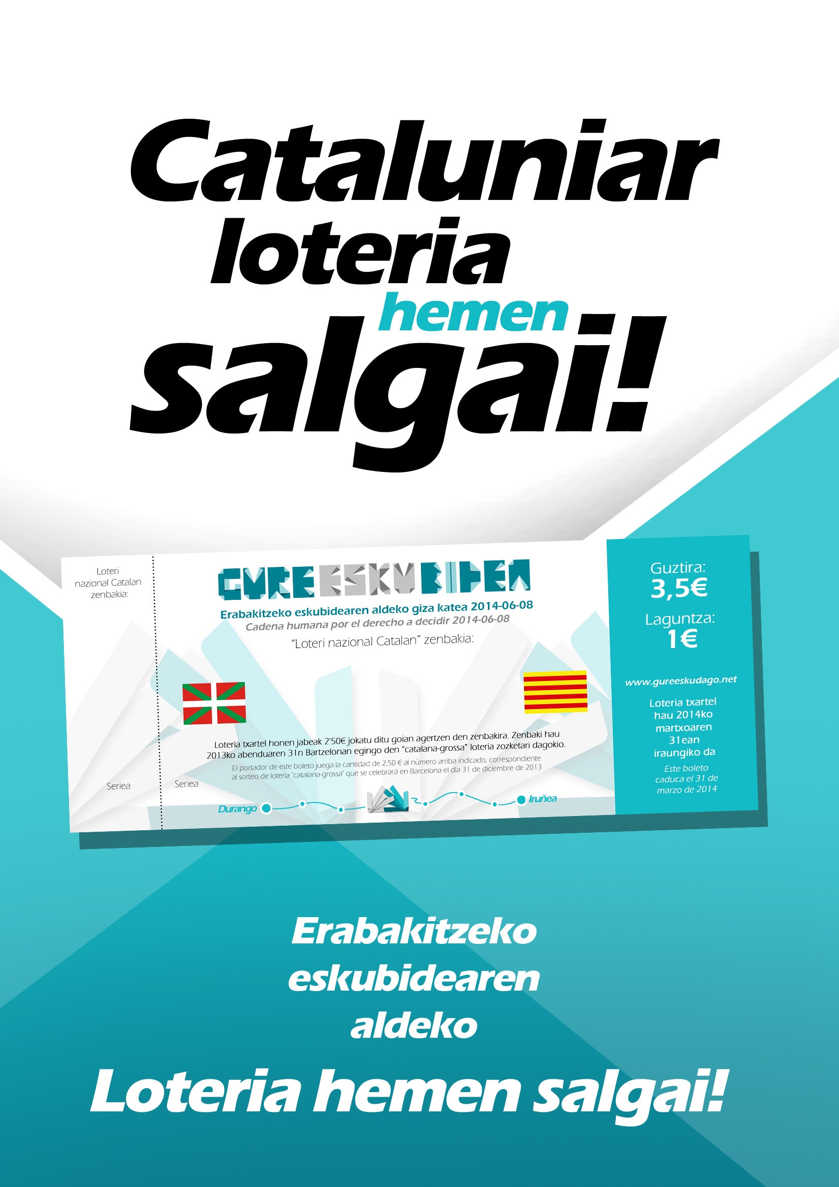 Kanpaina horren barrun, eta beste ekintza askoren artin, CATALUNYAK independentziaruntz daukan prozesuai elkartasuna adieraziz, eta geuriai laguntzeko, Catalunyako loteixa nazionaleko biletik saltzen hasi diz.