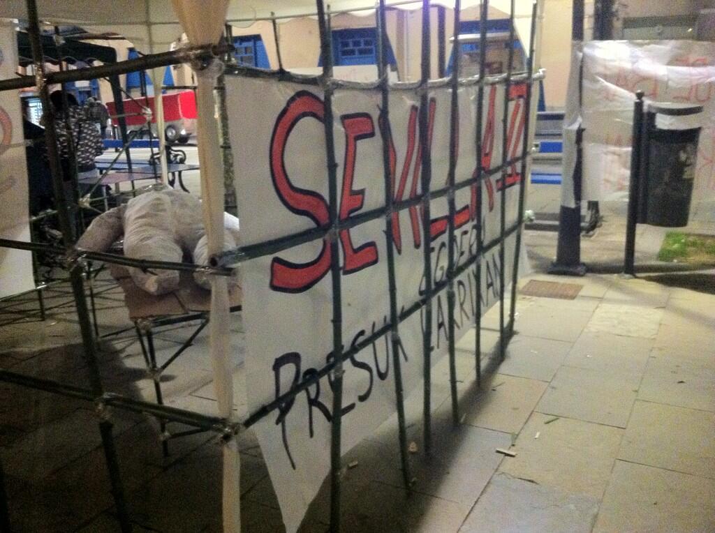 Alamedan daz herritxar batzuk Sevilla II kartzelako presun egoeri salatzen. Hauxe idatzixe bidalduskue: