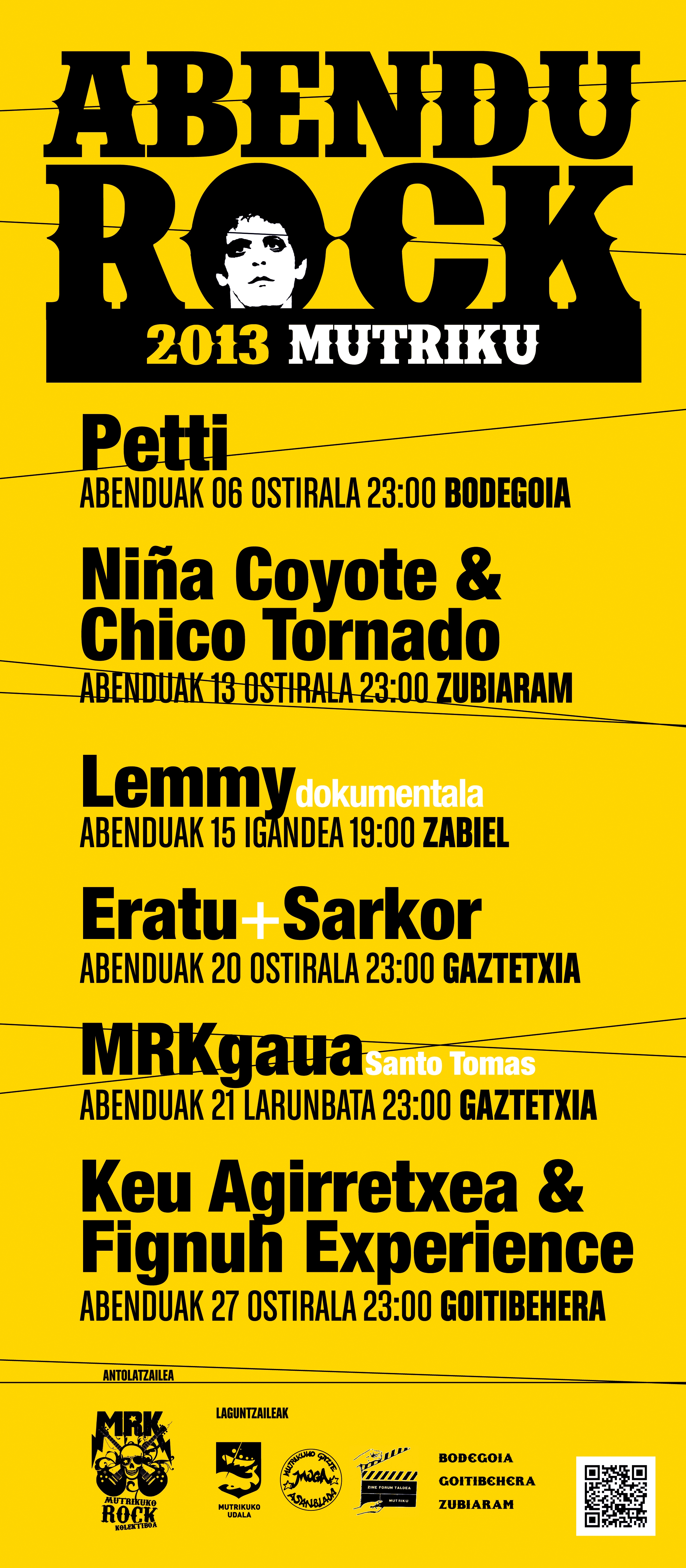 9. urtez jarraian, Mutrikun AbenduRock rock-emanaldi sorta izango dugu aurtengoan ere, neguko gau hotz-ilunak argitu eta berotzen dituen hilabete osoko rock egitaraua, Mutrikuko Rock Kolekboak antolaturik eta Gazte asanblada, Udala, zine forum taldea eta herriko taberna desberdinen laguntzarekin antolatutako ekimena. Kontzertu guztiak ostiralez izango dira, abenduaren 21eko ROCK GAUA izan ezik (Larunbatez) eta gaueko 11etan hasiko dira, GUZTIAK DEBALDE!!!