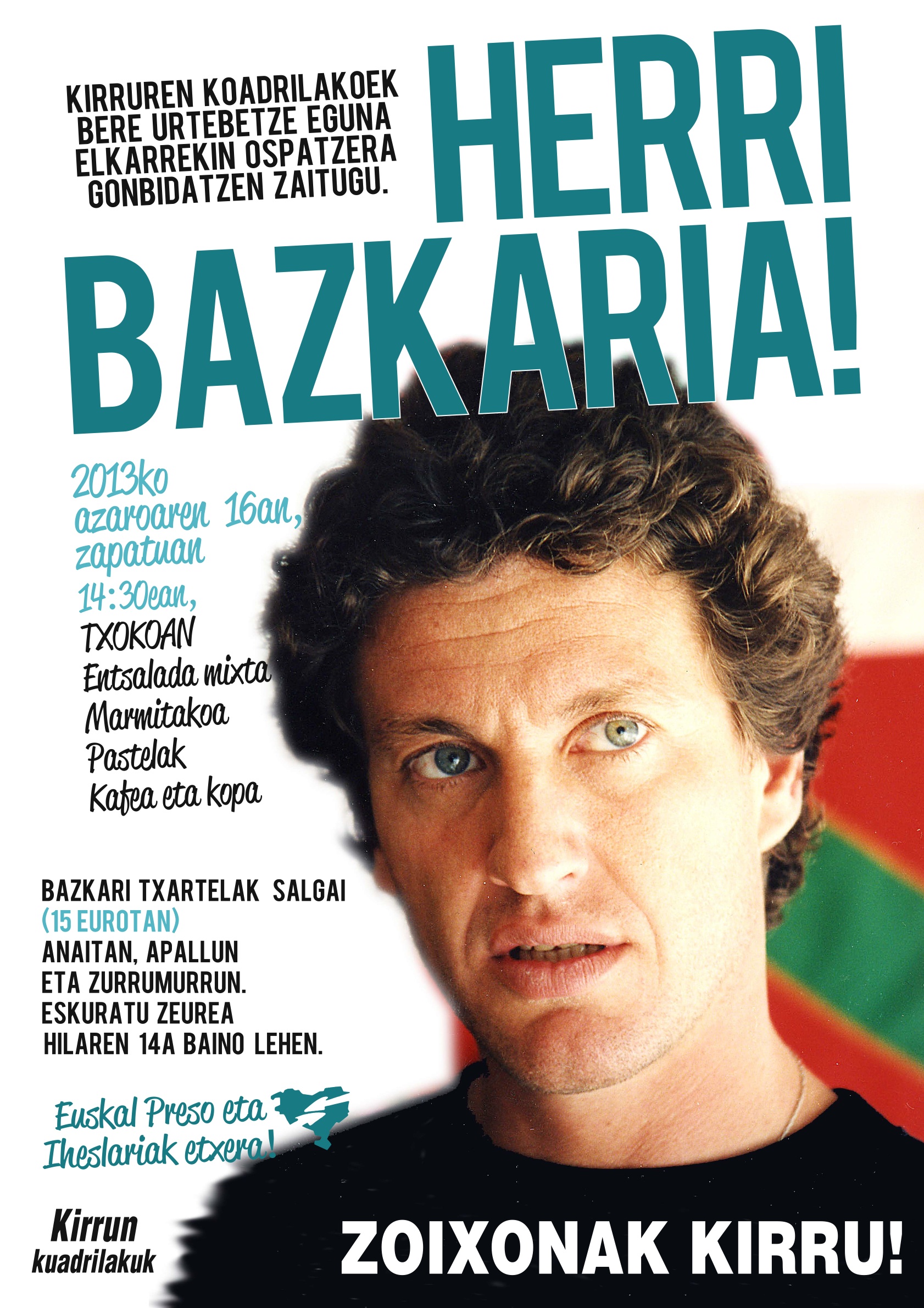 Azaroak 16 (zapatu) HERRI BAZKAXE Txokun, KIRRUn kuadrillik antolatute