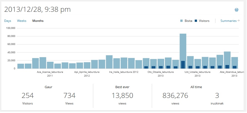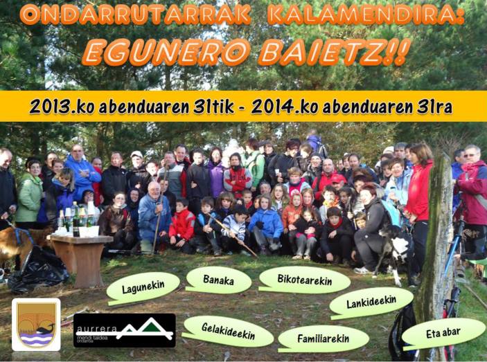 Helburu, 2014 urteko 365 egunetan, Ondarrutarren bat KALAMENDIRE juti ixango litxake. Urti luzi danetik, egon leike “hutsune” batzuk, bañe ez dou “porrot” latxeik hartuko, ixan be, ziur gazelako, gehixa ixango dizela Ondarrutar bat baino gehixa KALAMENDIN ixango dizen egunak.