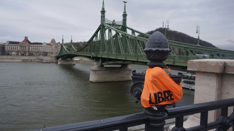 ONDARRUko Institutuko batxillerrekuk, Budapesten egon diz aurreko astin interkanbixun (ikasle abertzalitakuk barne), eta honetxeaz argazkixaz elkartasune adierazten dotze LIBRE plataformiai. Buda eta Pest auzuk batzen dotxuzen Danubixo gaineko zubixe da.