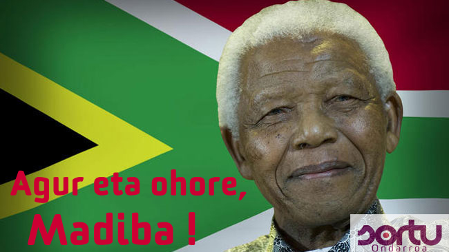 Ohar txiki bat sartu birdou Madiban bixitxin buruz, gaur hainbestek goraipatzen daben gixona, beran sasoin Umkhonto We Sizwe (ANC) adar militarreko buruzagi nagusixe ixan zan. Gaur egun talde “terrorista” deitzen dan horietaku. Mundu hau hipokritaz beteta dala demostraten dau gixon honei gaur egun eitten dotzen onarpena. Kartzelan 27 urte pasaban, ez ostearren, baizik eta bere herrixan aurkako zapalkuntziai aurrea ein eta borroka mota bat aukeratubanelako, borroka armatu. Sudafrikan, Irlandan, Euskal herrixan… jende askorek eindau bat borroka molde bardiñakin eta egunen baten holaik onartuko dauela pentsatzen dou.