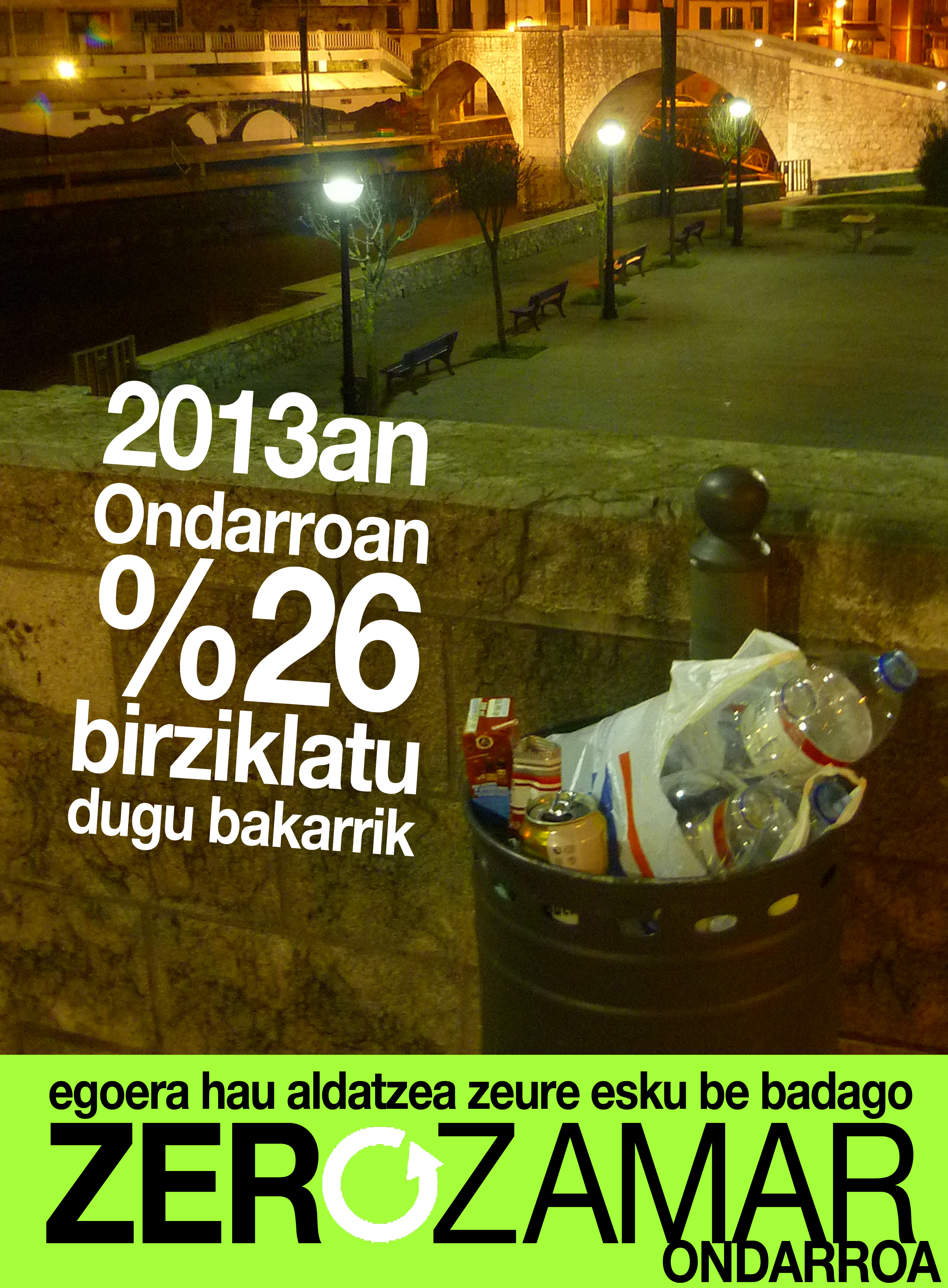 Ondarroa Zero Zamar taldik emon dau ixezko datu, eta benetan kezkagarrixe da ingurumenai etxen gabizen kalti. Birziklatu ein bir dou, zamarrak Alonsotegire erretea bixaldu ordez. Bestelan, zelako Euskal Herrixe lagako dotsau gure seme alabai?