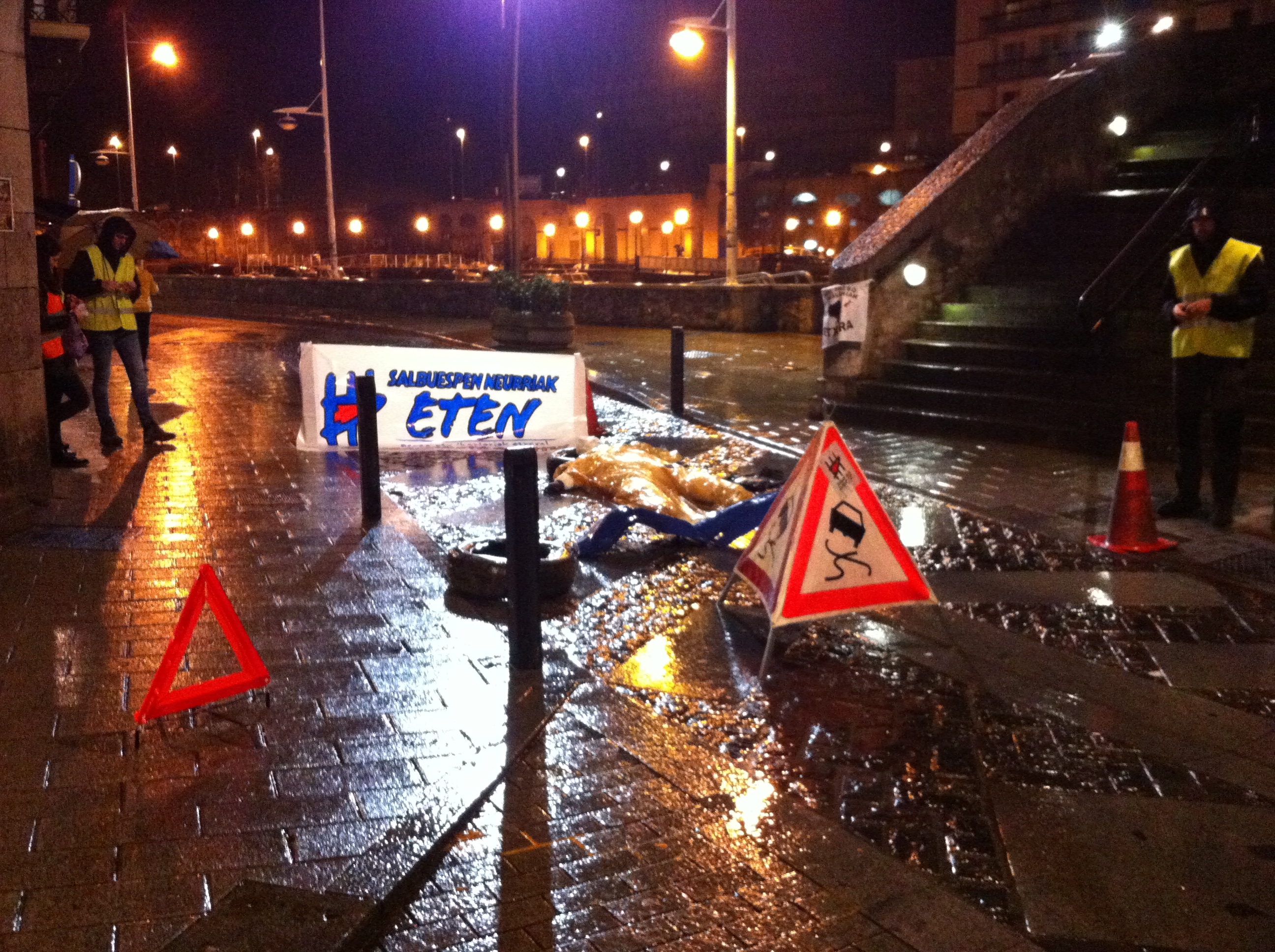 Atsaldin ostea, herriko Alde zaharrin, antzerki bat einben erakustea emoteko presuk bixitxatea juten dizenai bidin gertatu ixan gakuezen auto istripuk.